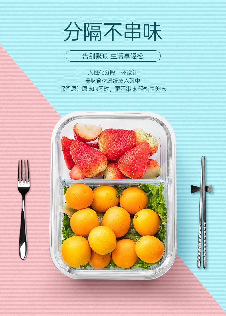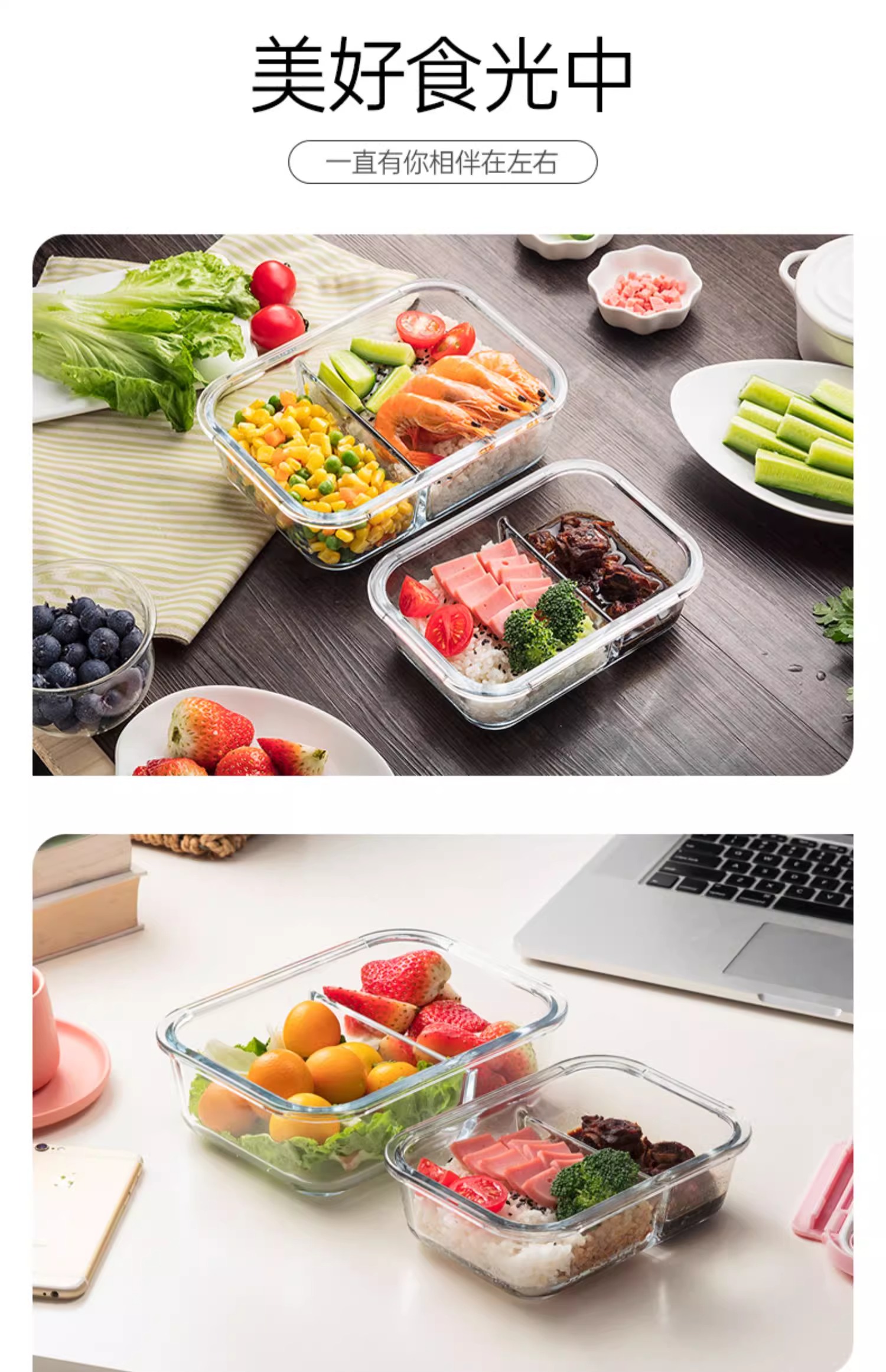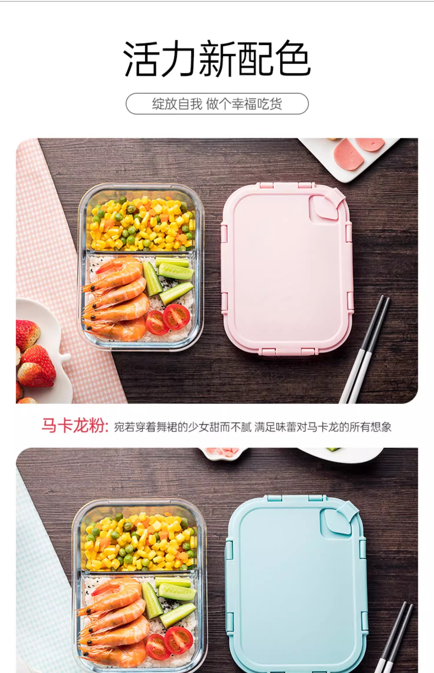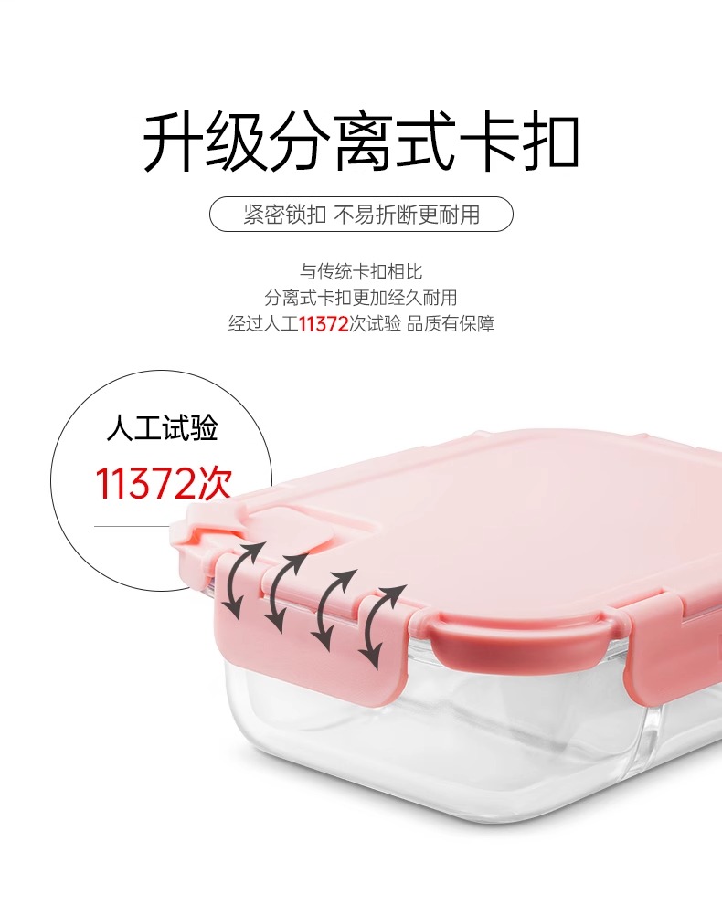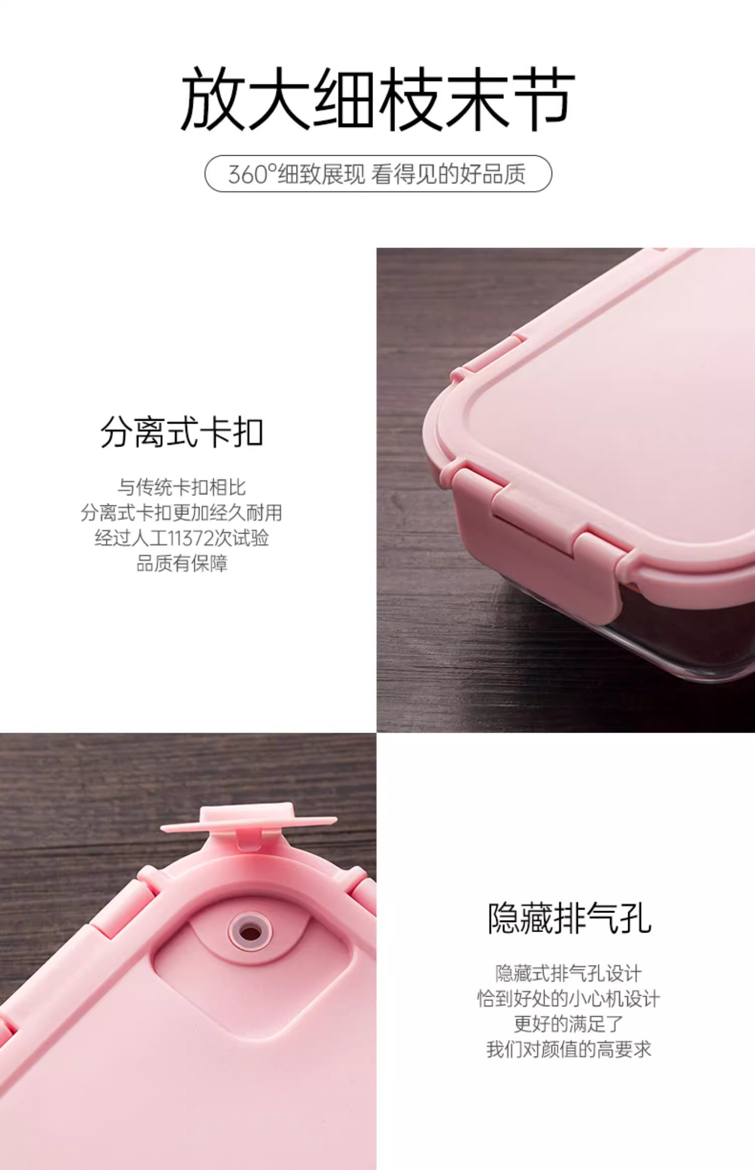 物生物(RELEA) 长方形玻璃饭盒 JV061710-1040-FS00 1040ML 粉色三分隔(单位:个)