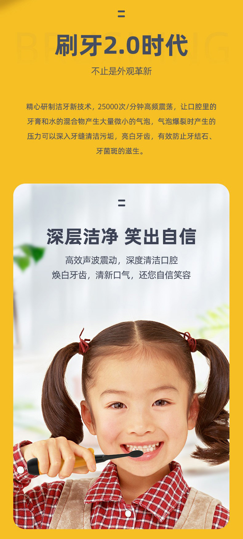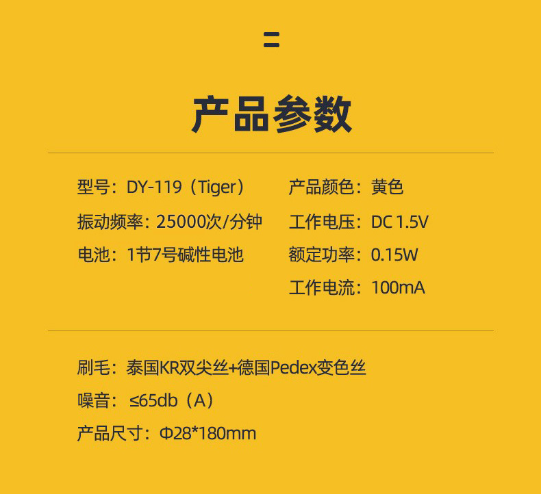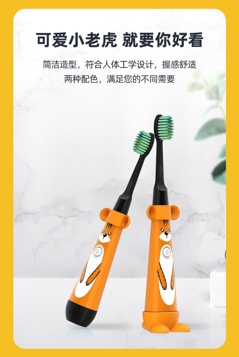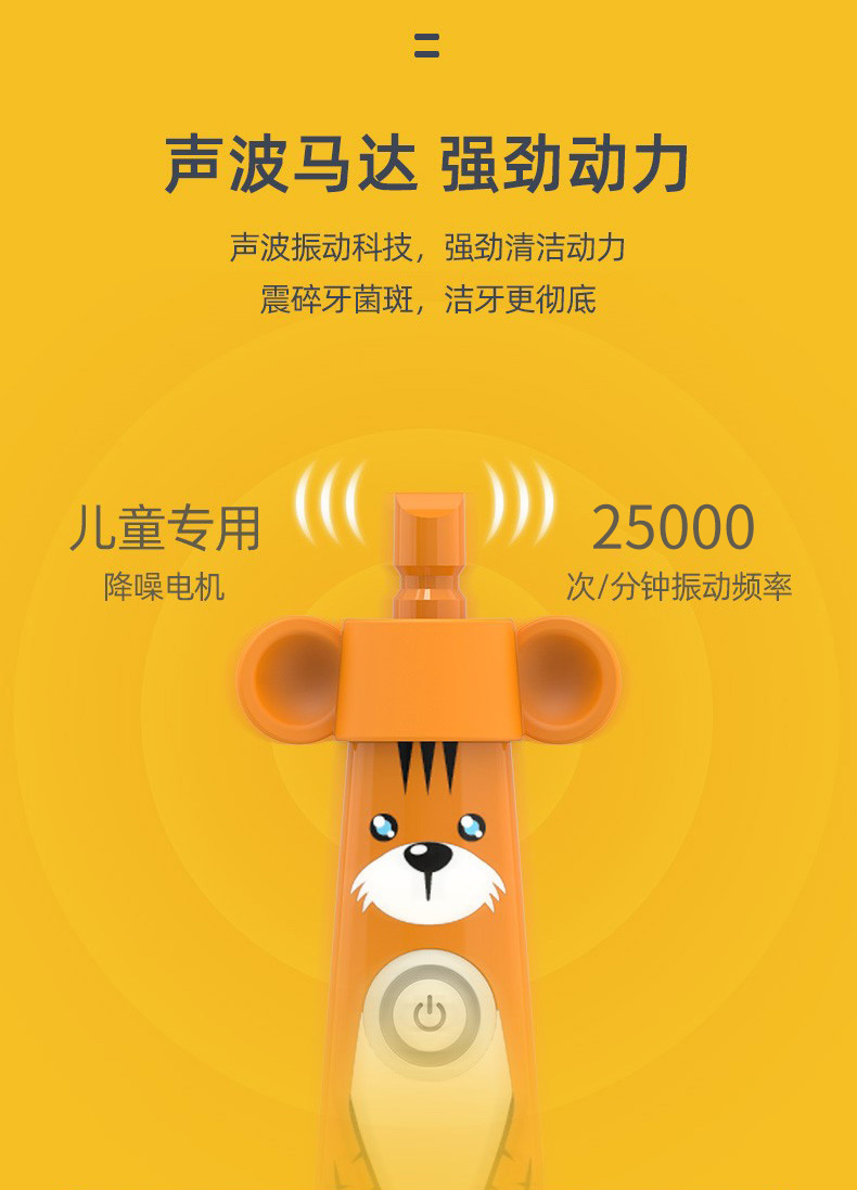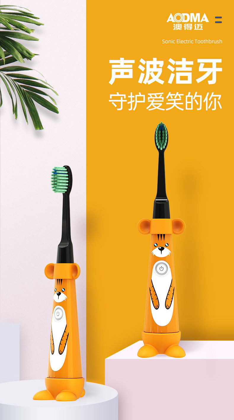 澳得迈(AODMA) 声波震动电动牙刷儿童款 深层洁净 软毛刷头 DY-119(Tiger) 振动频率25000次/分钟 黄色(单位:支)