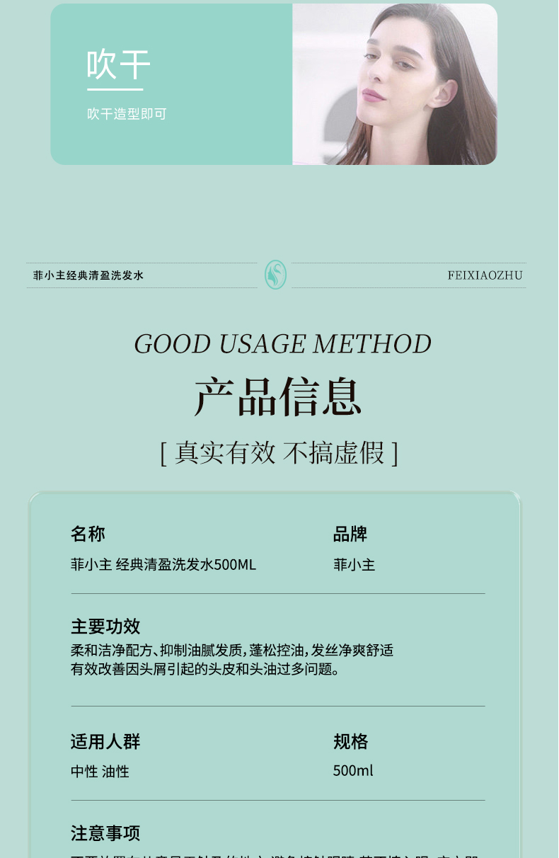 菲小主 经典系列 清盈控油洗发水 500ml 混色(单位:瓶)
