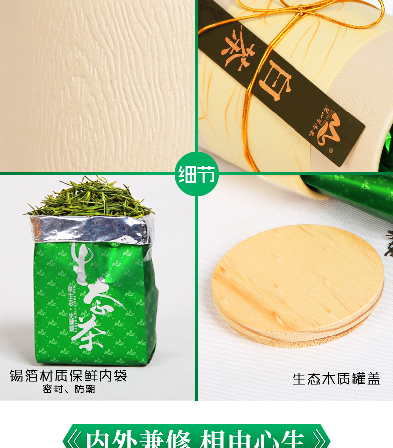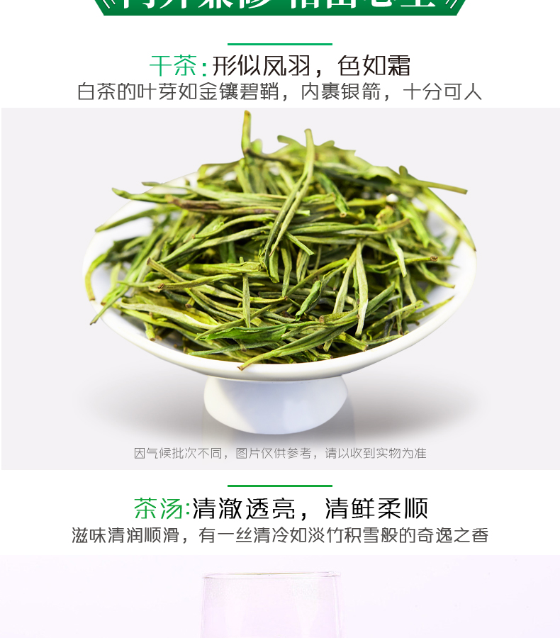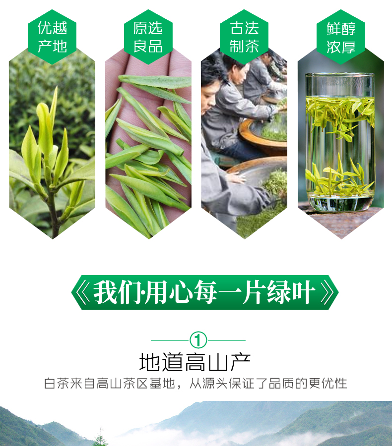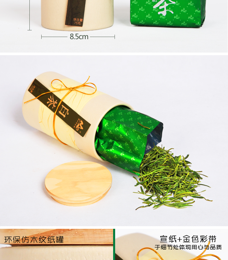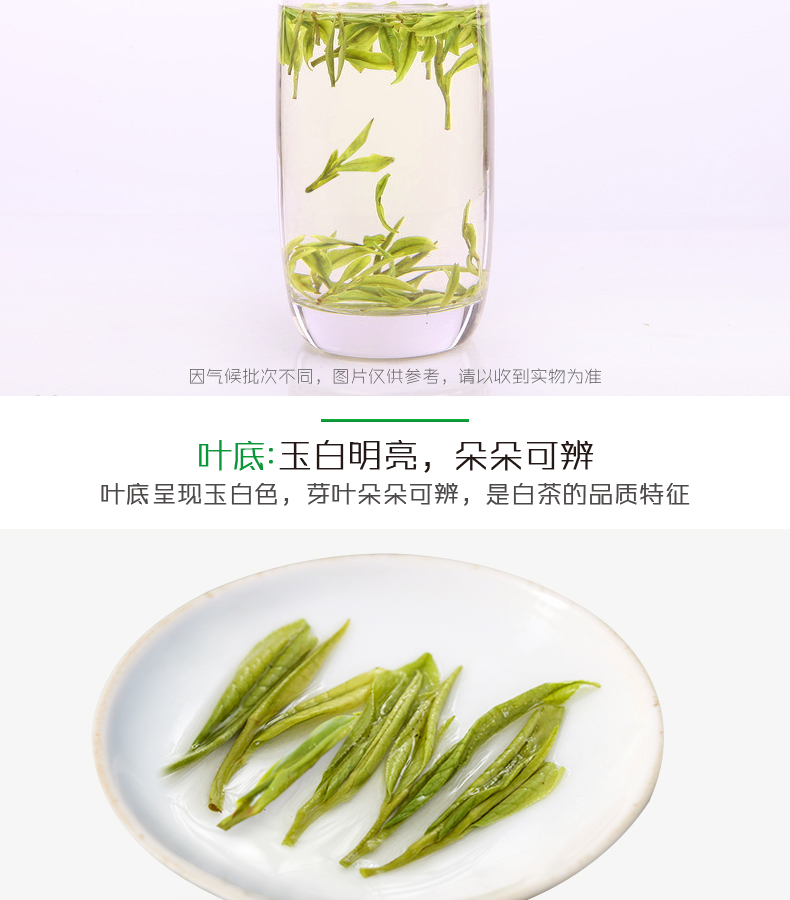 茗山生态茶 白茶明前绿茶 春毛峰茶叶 环保木罐装 75g*2共150克/2罐/份单位:组 白色