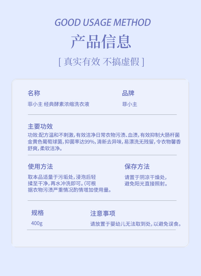菲小主 酵素浓缩内衣清洗 经典酵素浓缩洗衣液 400g 混色(单位:瓶)