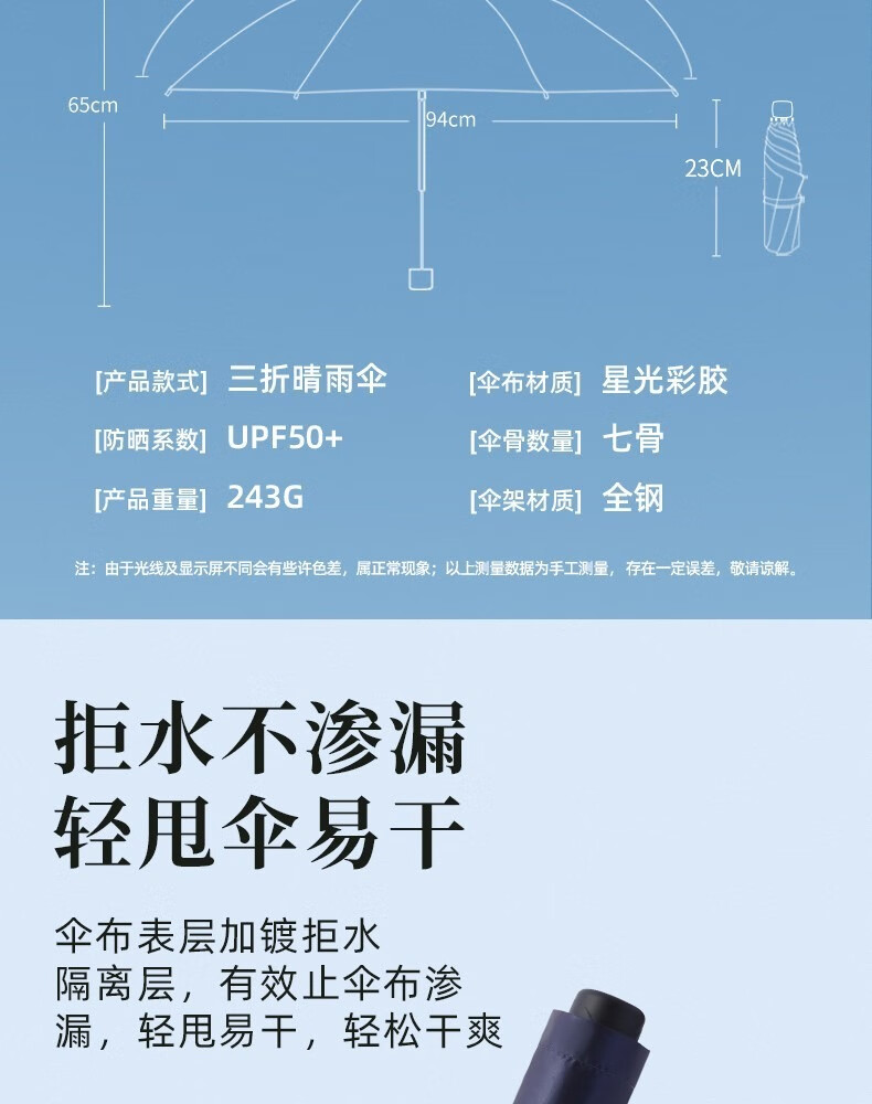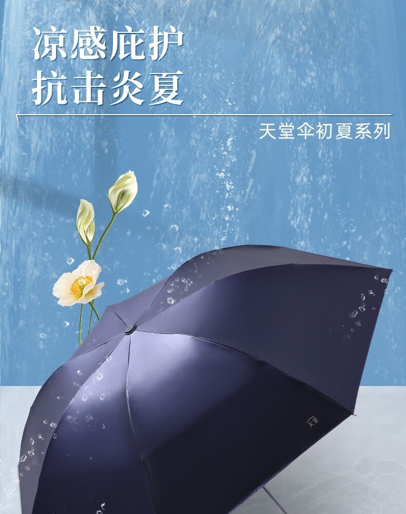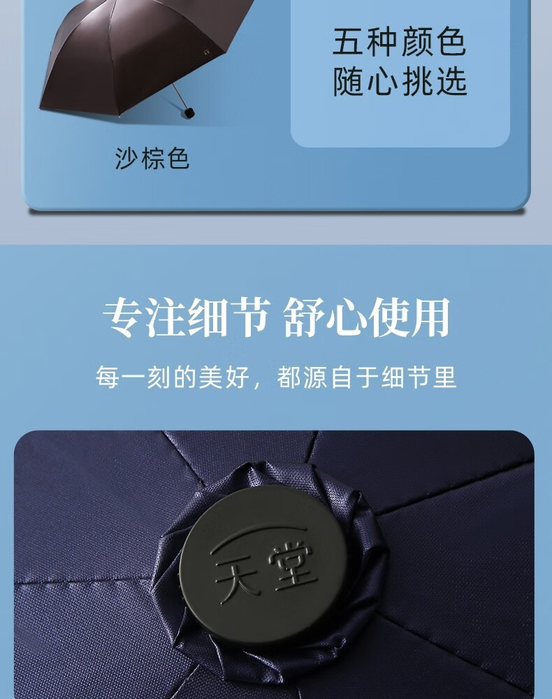 天堂 三折反向彩胶晴雨伞 36155EZ 57cmX7骨 紫红(单位:把)