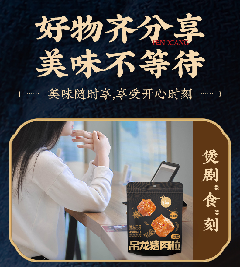 富崎乐(Fukilo) 吊龙猪肉粒 微辣 128g*2 黑色(单位:组)
