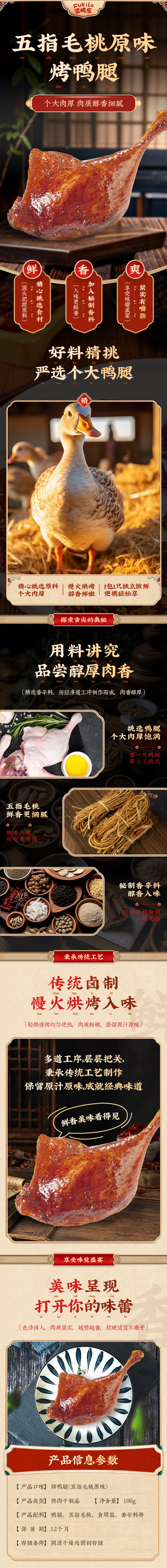 富崎乐(Fukilo) 烤鸭腿 五指毛桃原味 100g*2 棕色(单位:组)