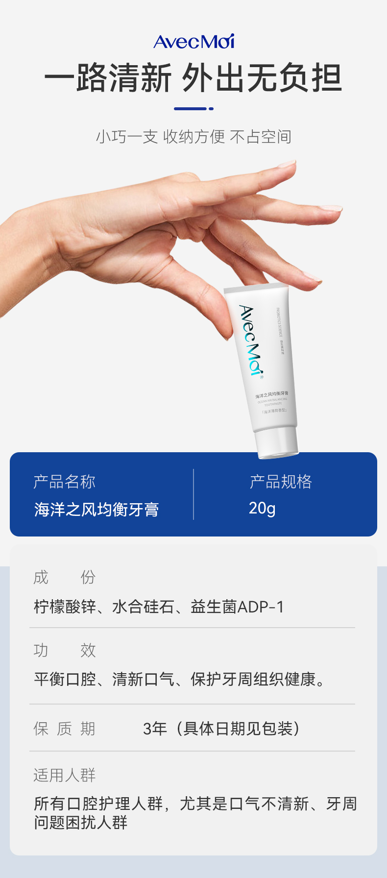 Avec Moi 海洋之风牙膏 旅行装 20g 蓝色(单位:盒)