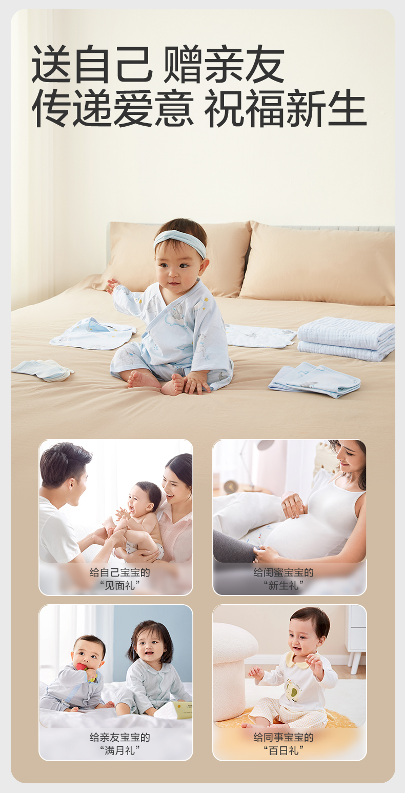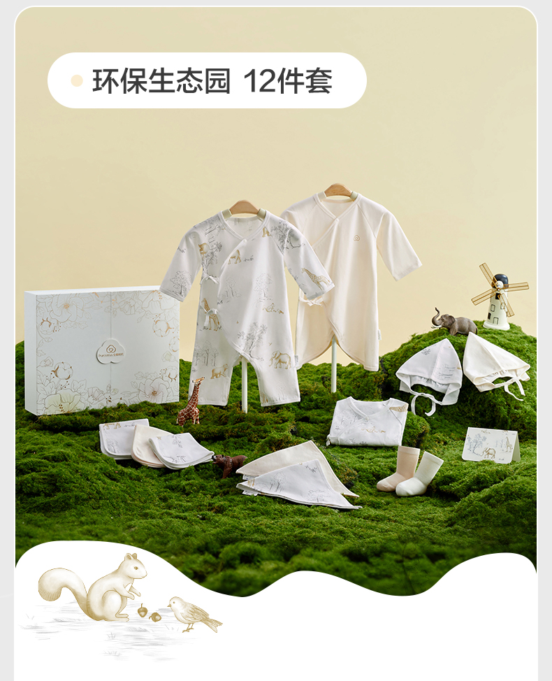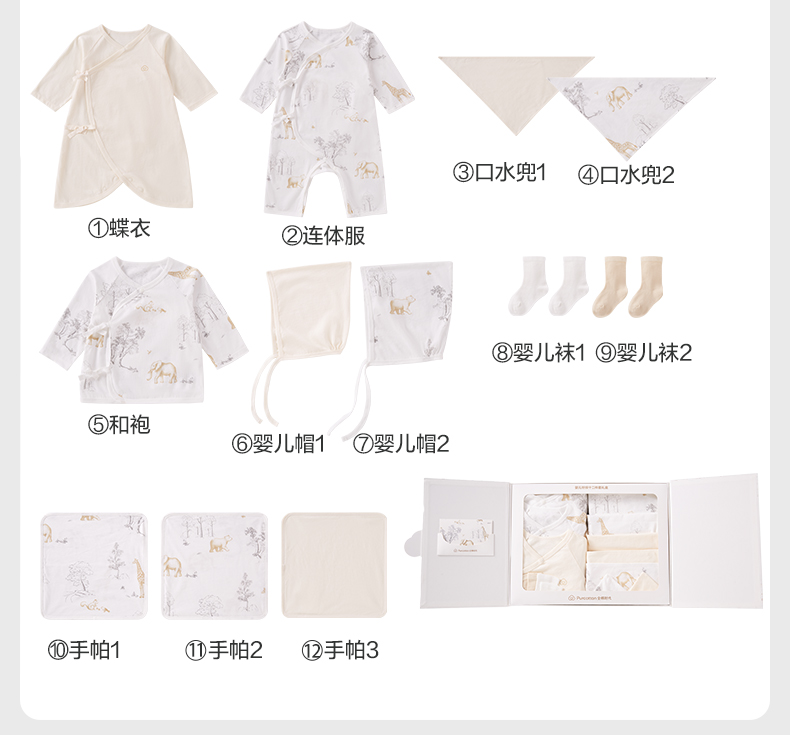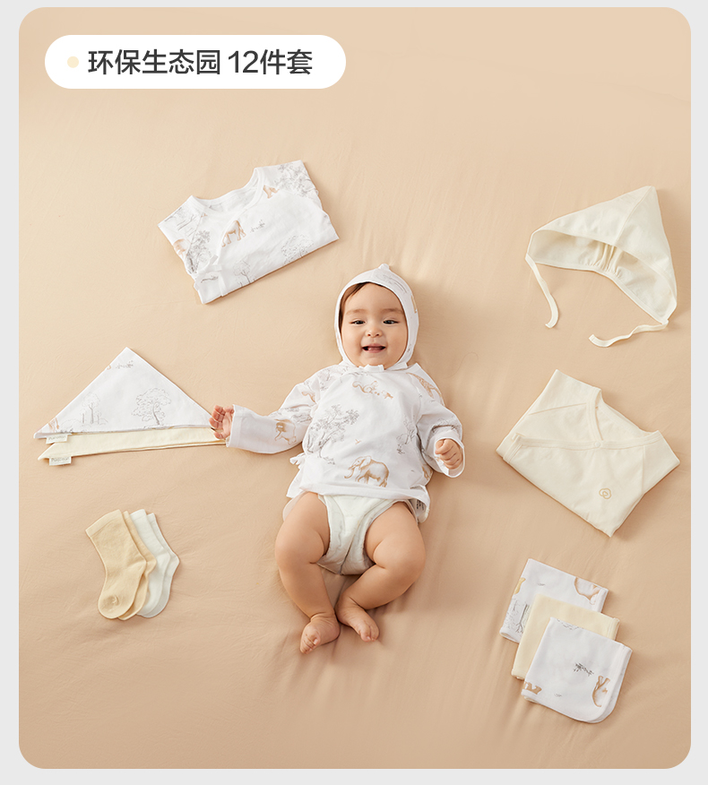 全棉时代 初生婴儿针织套装用品礼盒 环保生态园 四季十二件套 白色(单位:盒)