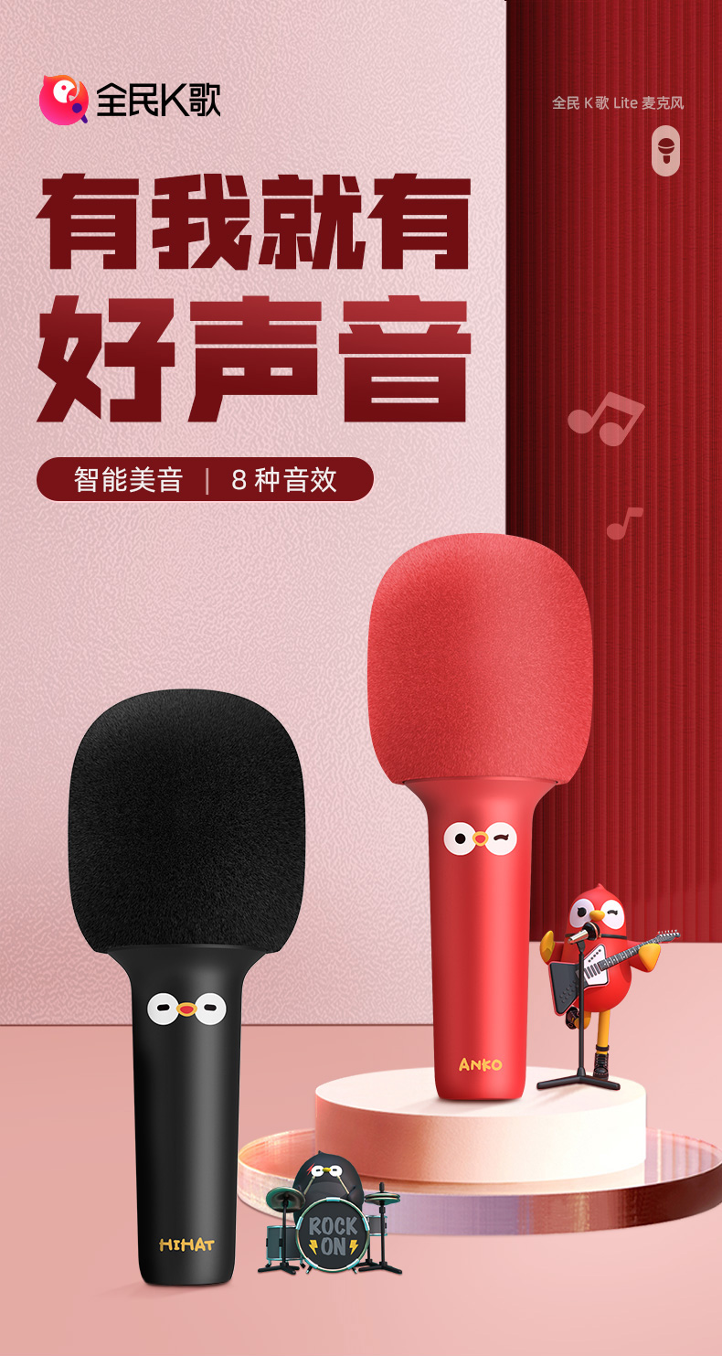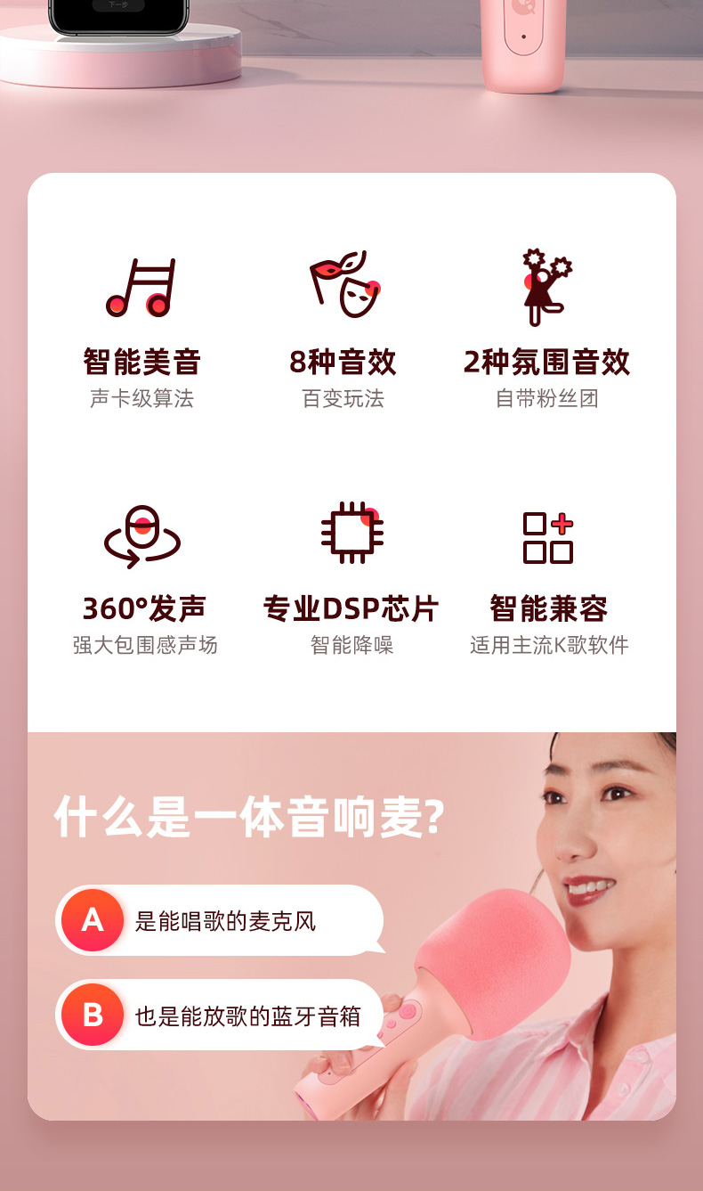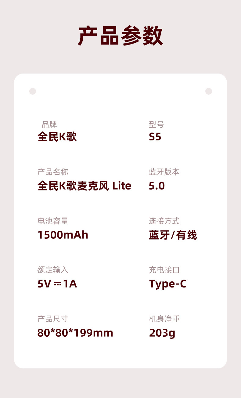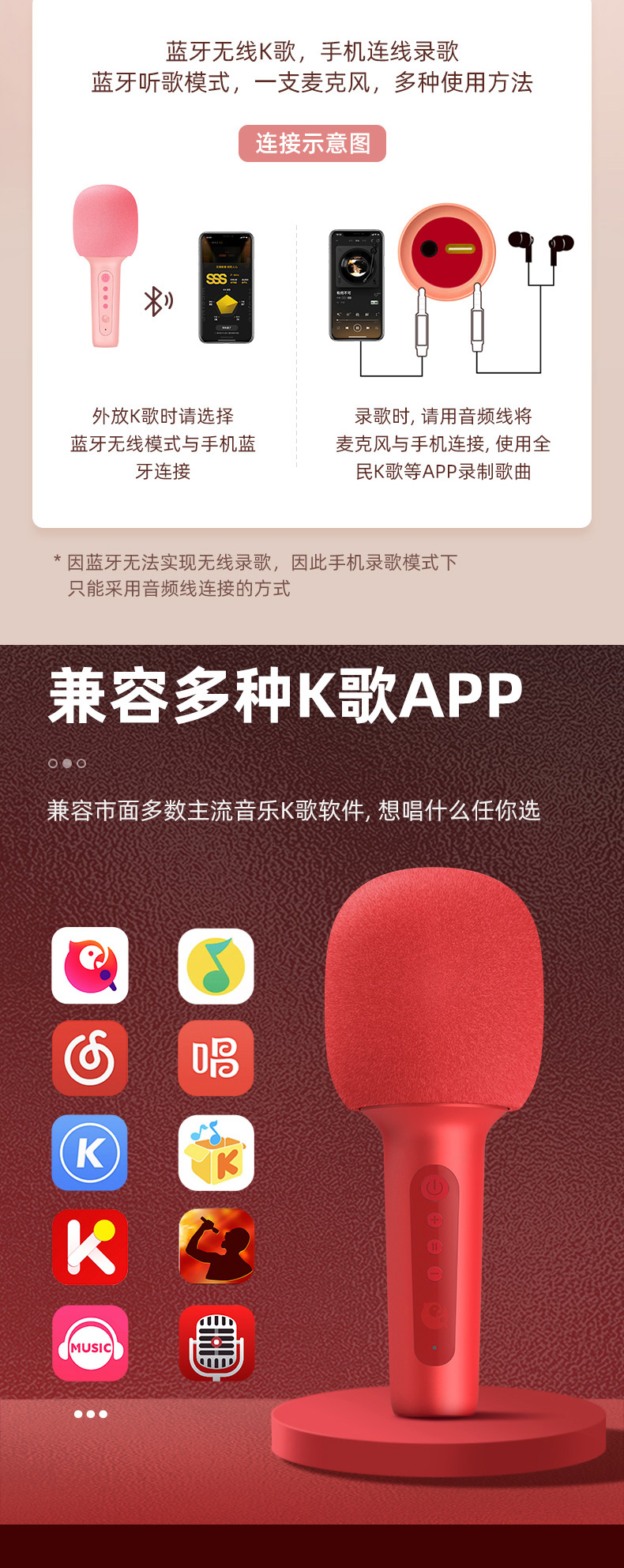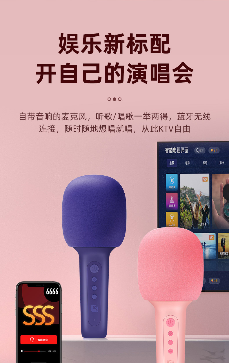 全民K歌 音响一体式麦克风 S5 1500mAh 粉色(单位:个)