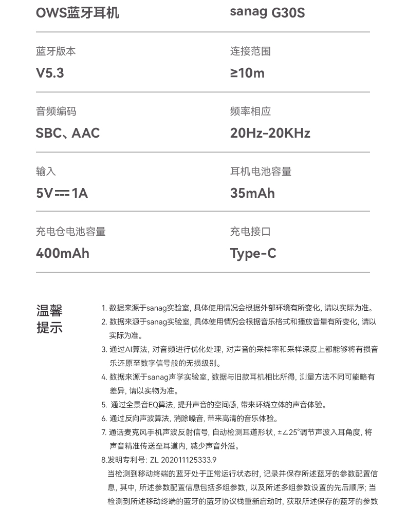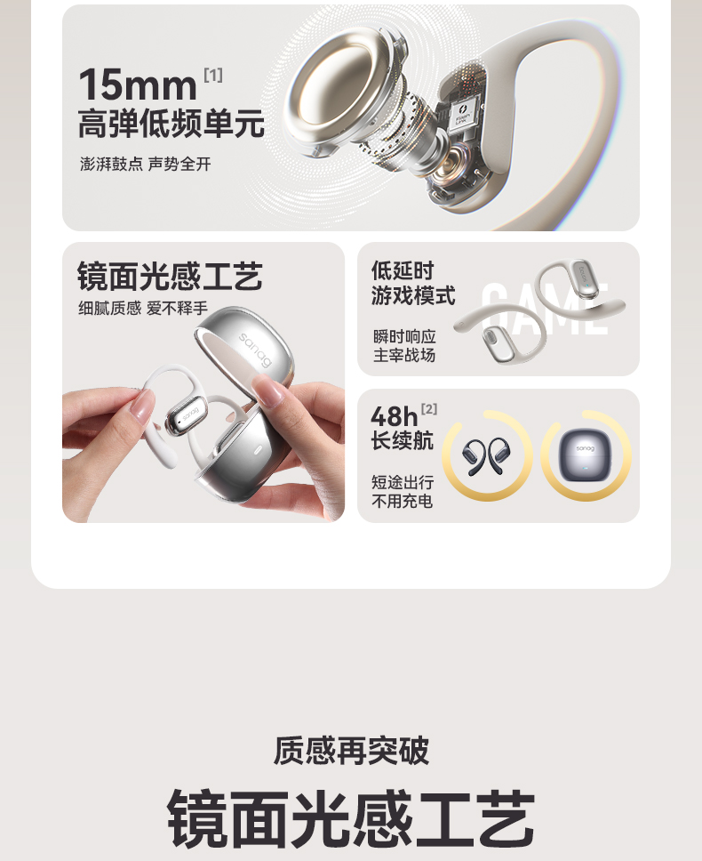 SANAG 挂耳式运动跑步耳机 S-G30S 48小时续航 空灵白(单位:副)
