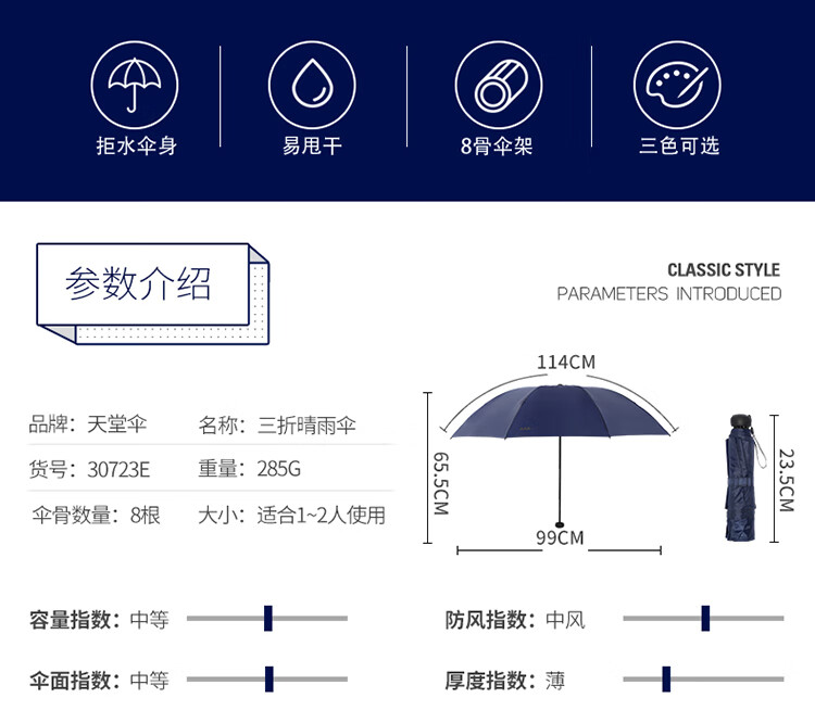 天堂 天堂伞防风雨伞三折雨伞 30723 . 无色(单位:把 )