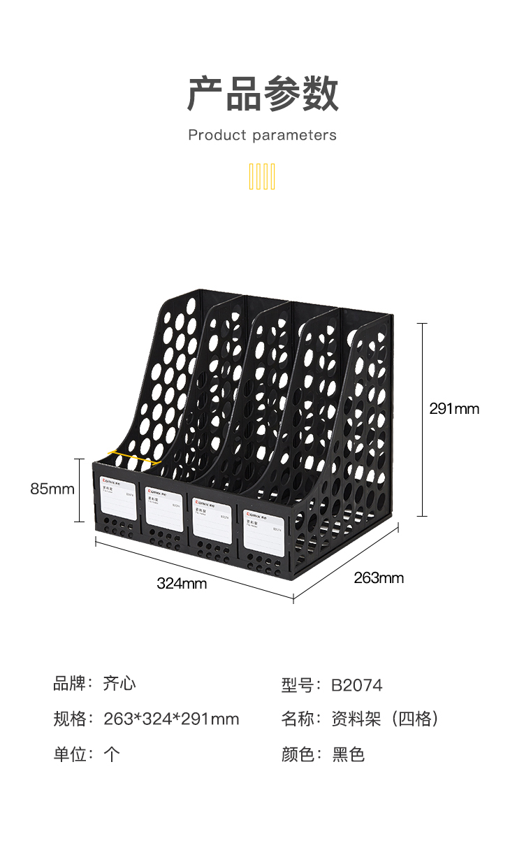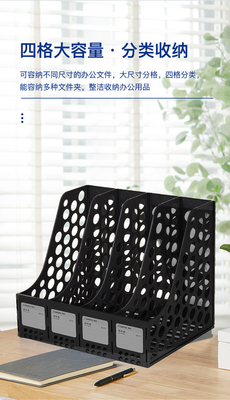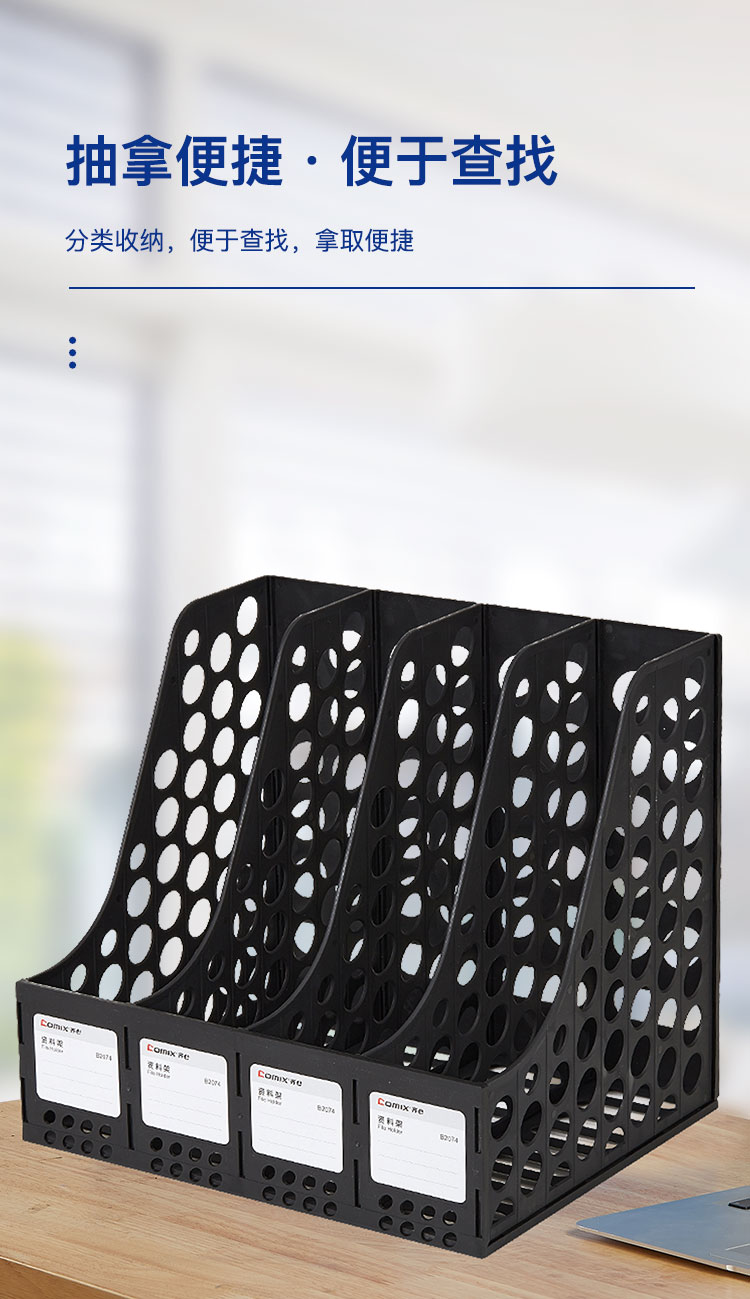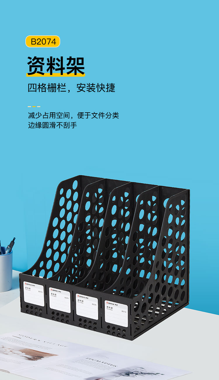 齐心(COMIX) 资料架 B2074 四格263*324*291mm 黑色(单位:个)