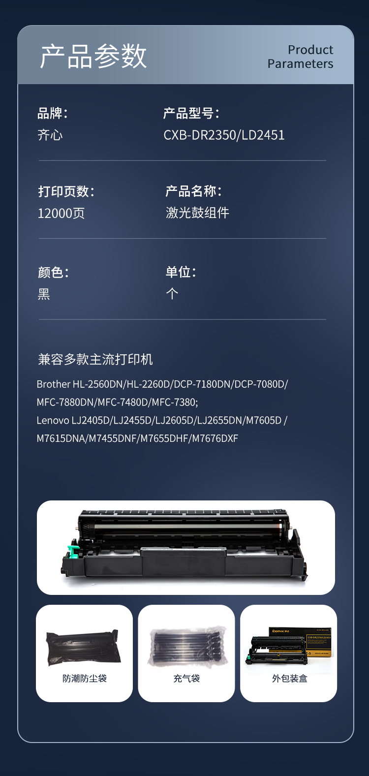 齐心(COMIX) 激光鼓组件 CXB-DR2350/LD2451 12000页 黑色(单位:个)