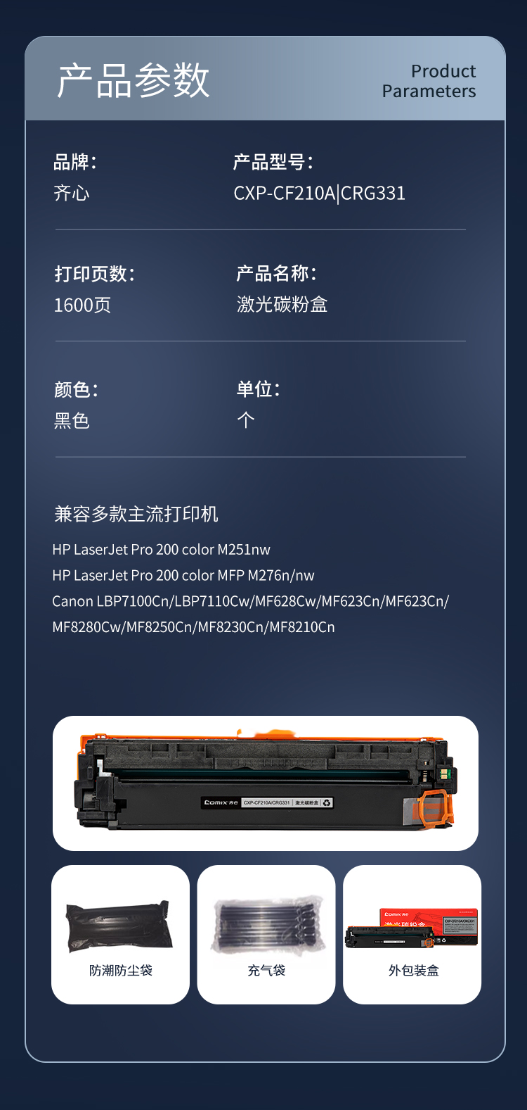 齐心(COMIX) 激光碳粉盒 CXP-CF210A/CRG331 1600页 黑色(单位:个)