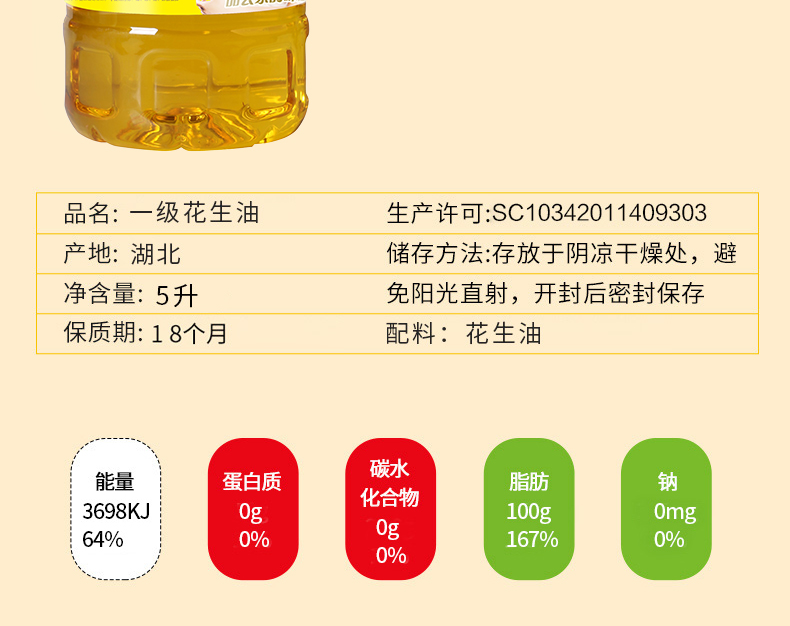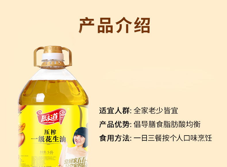 厨道压榨一级花生油5L 琥珀色
