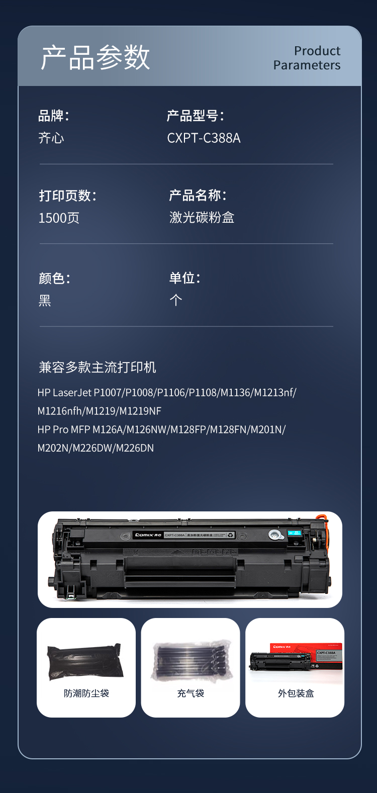 齐心(COMIX) 易加粉激光碳粉盒 CXPT-C388A 1500页 黑色(单位:个)