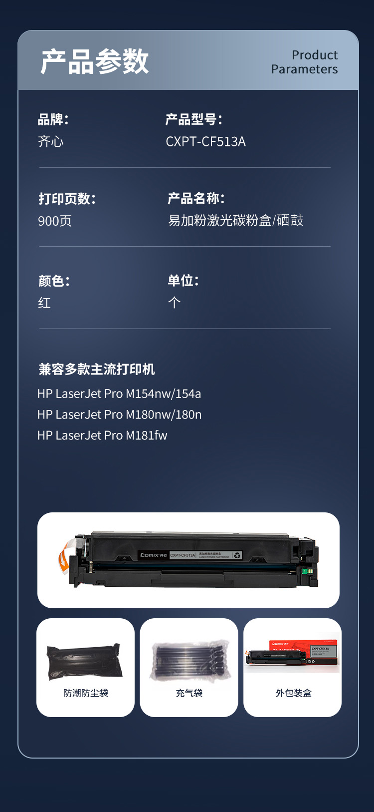 齐心(COMIX) 易加粉激光碳粉盒 CXPT-CF513A 900页 红色(单位:个)