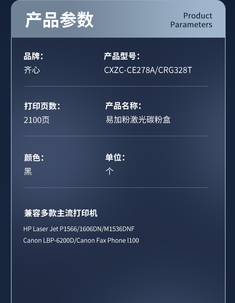 齐心(COMIX) 易加粉激光碳粉盒 CXZC-CE278A/CRG328 2100页 黑色(单位:个)