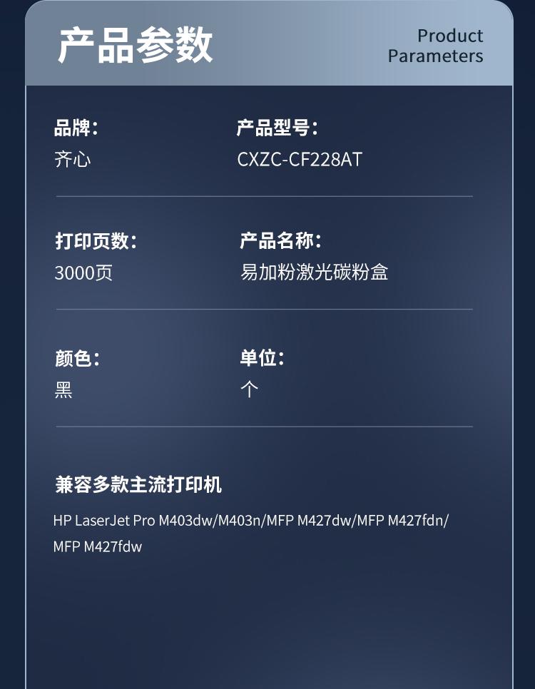 齐心(COMIX) 易加粉激光碳粉盒 CXZC-CF228AT 3000页 黑色(单位:个)