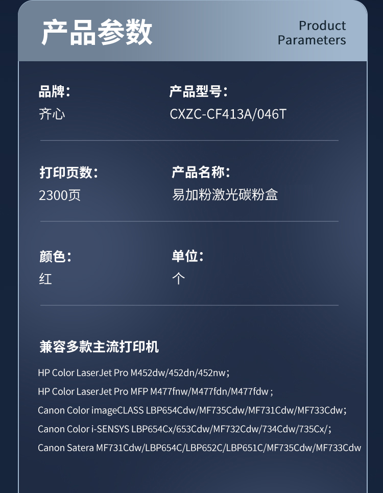 齐心(COMIX) 易加粉激光碳粉盒 CXZC-CF413A/046T 2300页 红色(单位:个)