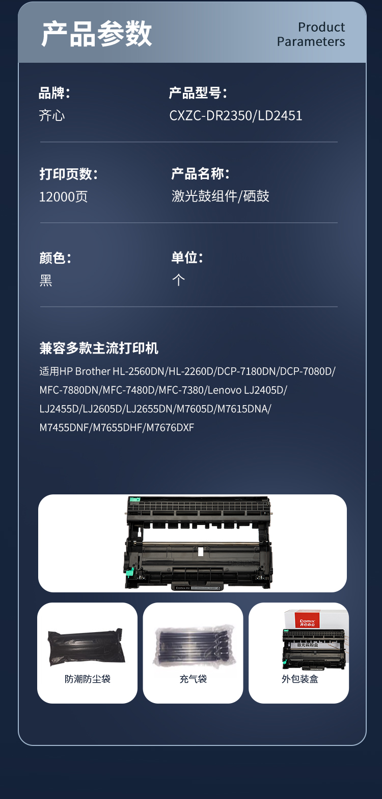 齐心(COMIX) 激光鼓组件 CXZC-DR2350/LD2451 12000页 黑色(单位:个)