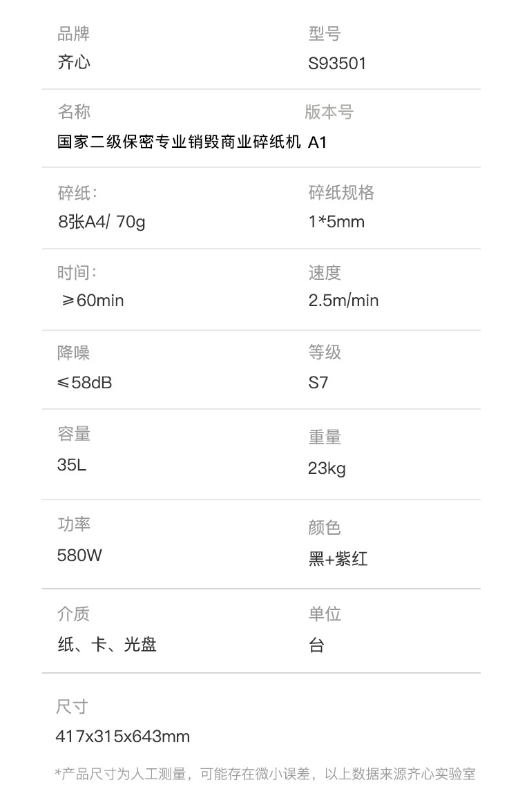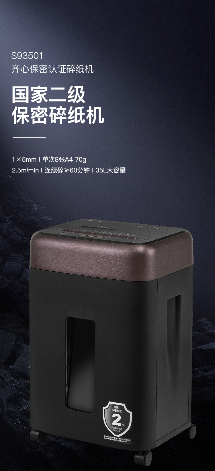 齐心(COMIX) 国保碎纸机 S93501 7级保密35L 黑+紫红色(单位:台)