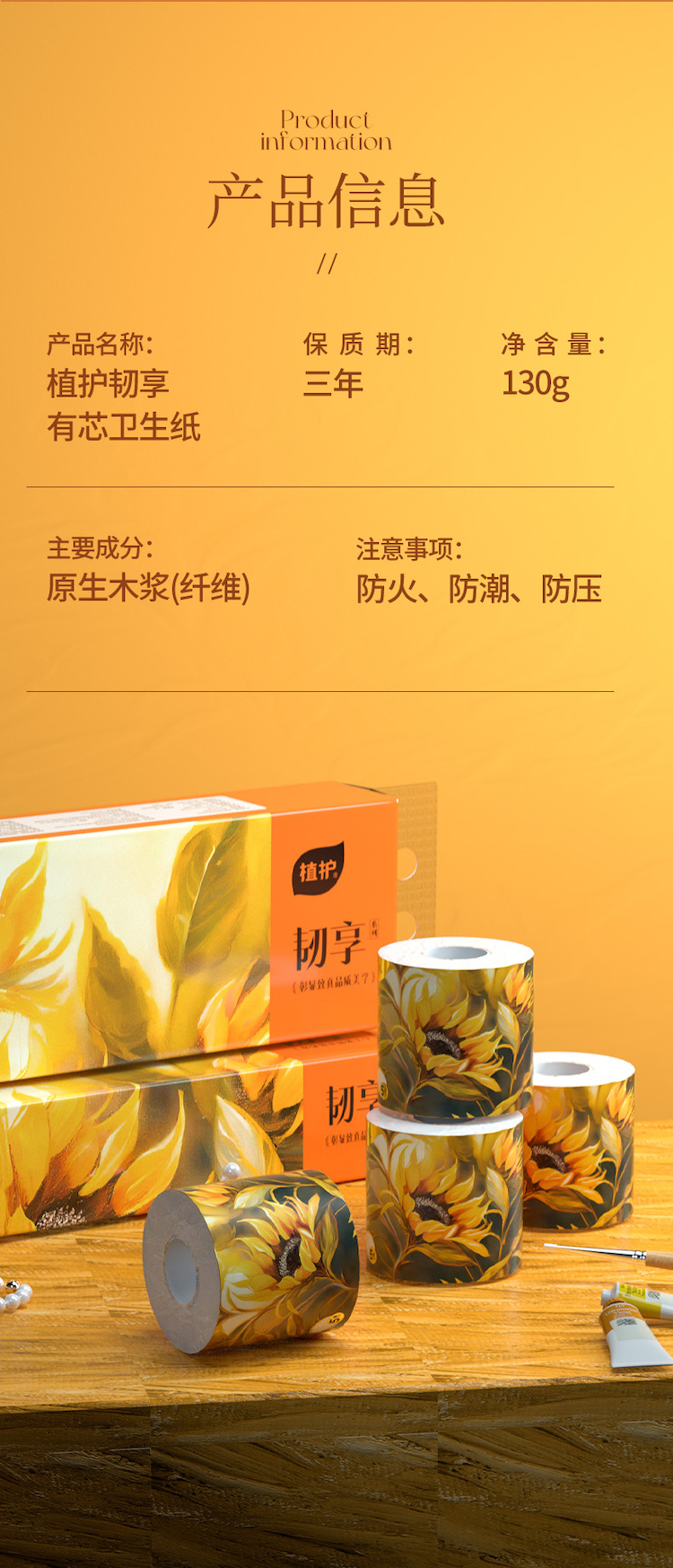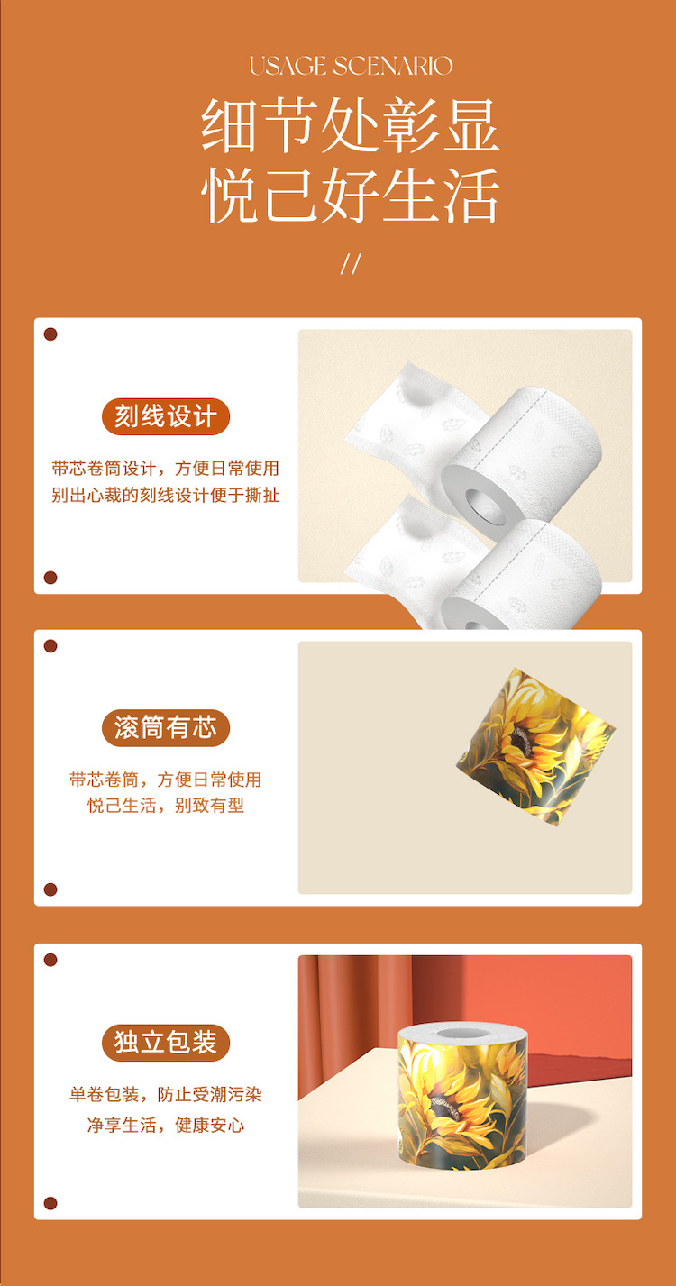 植护 韧享系列有芯卷纸 12卷/提*1提 100*120mm/5层 130g 橙色(单位:提)