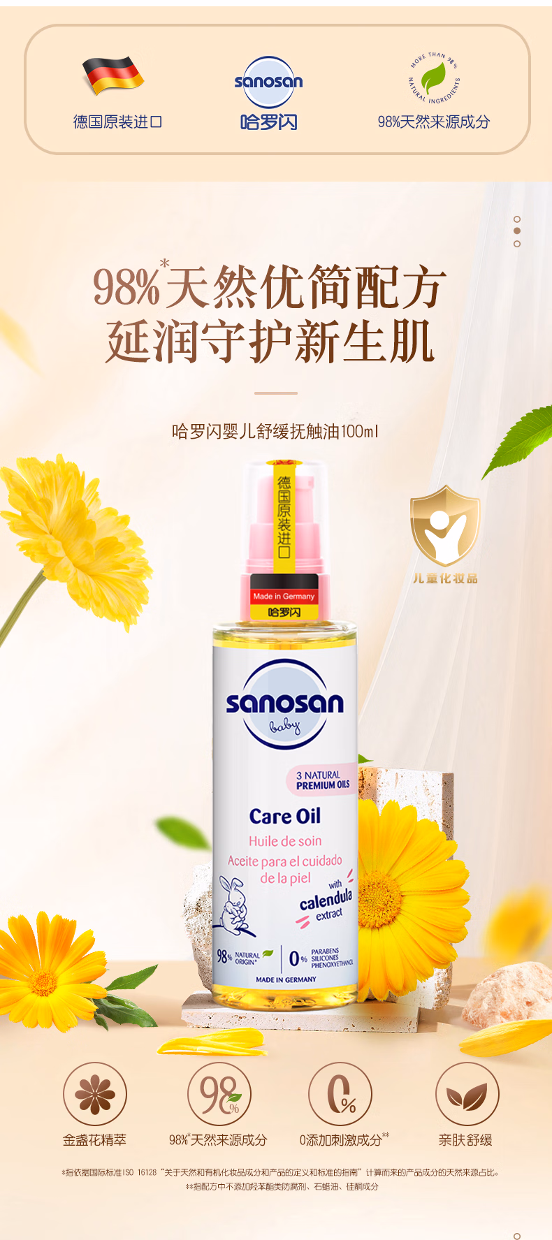 哈罗闪(sanosan) 婴幼儿舒缓抚触油 /泵头按压 100ml【0-3岁】抚触油 金黄色(单位:瓶)
