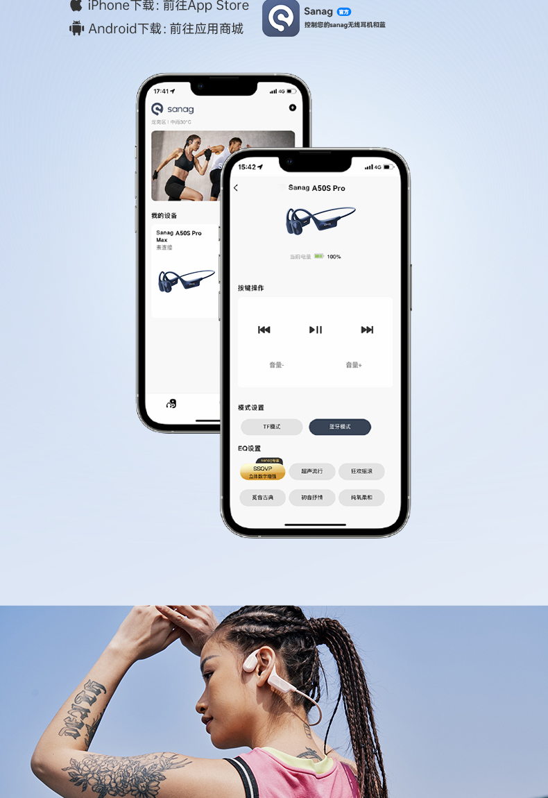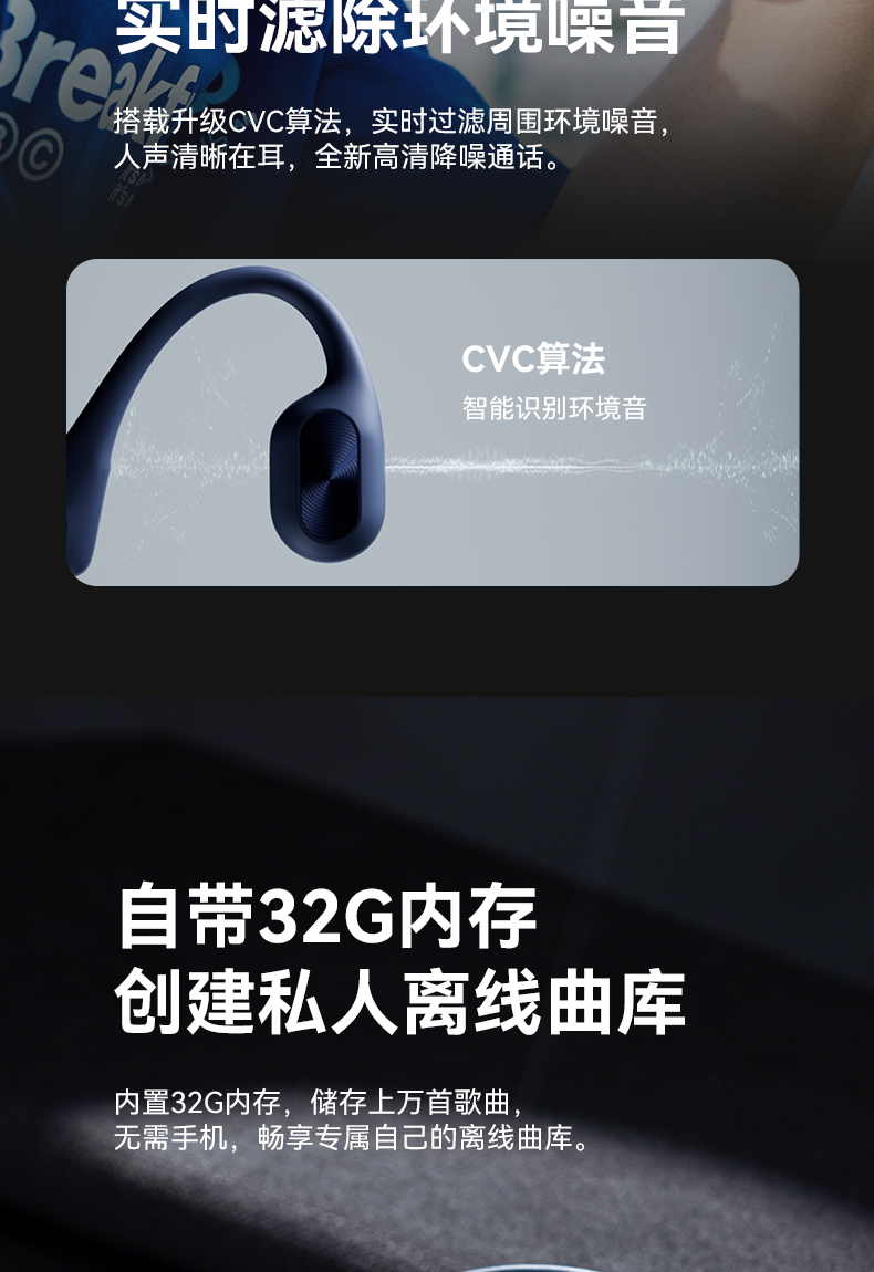 SANAG 不入耳气传导运动型蓝牙耳机 S-A50SPro 全天长效续航8小时 蓝色(单位:个)