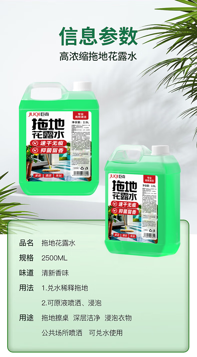 巨奇(JUQI) 拖地花露水 大容量商用款 2.5L 绿色(单位:瓶)