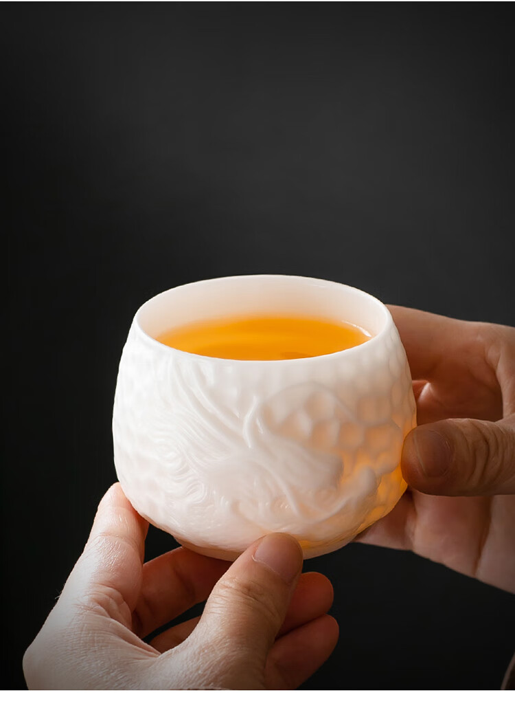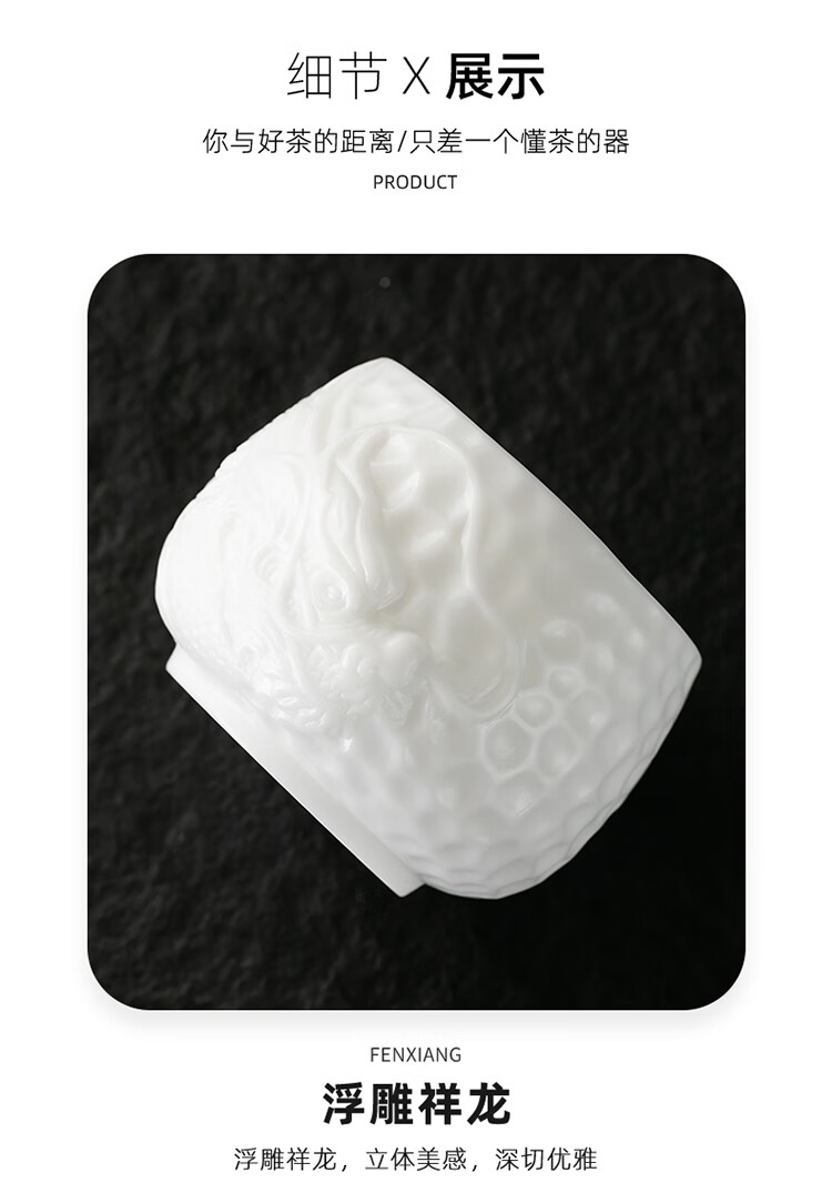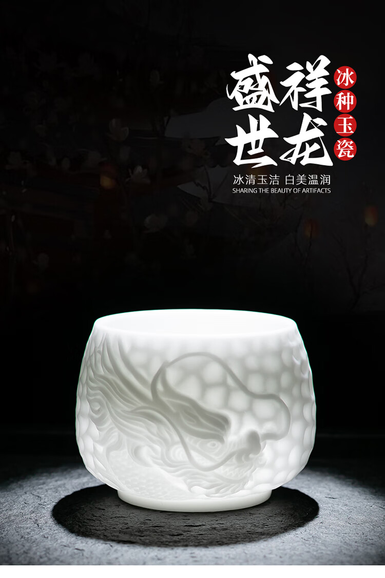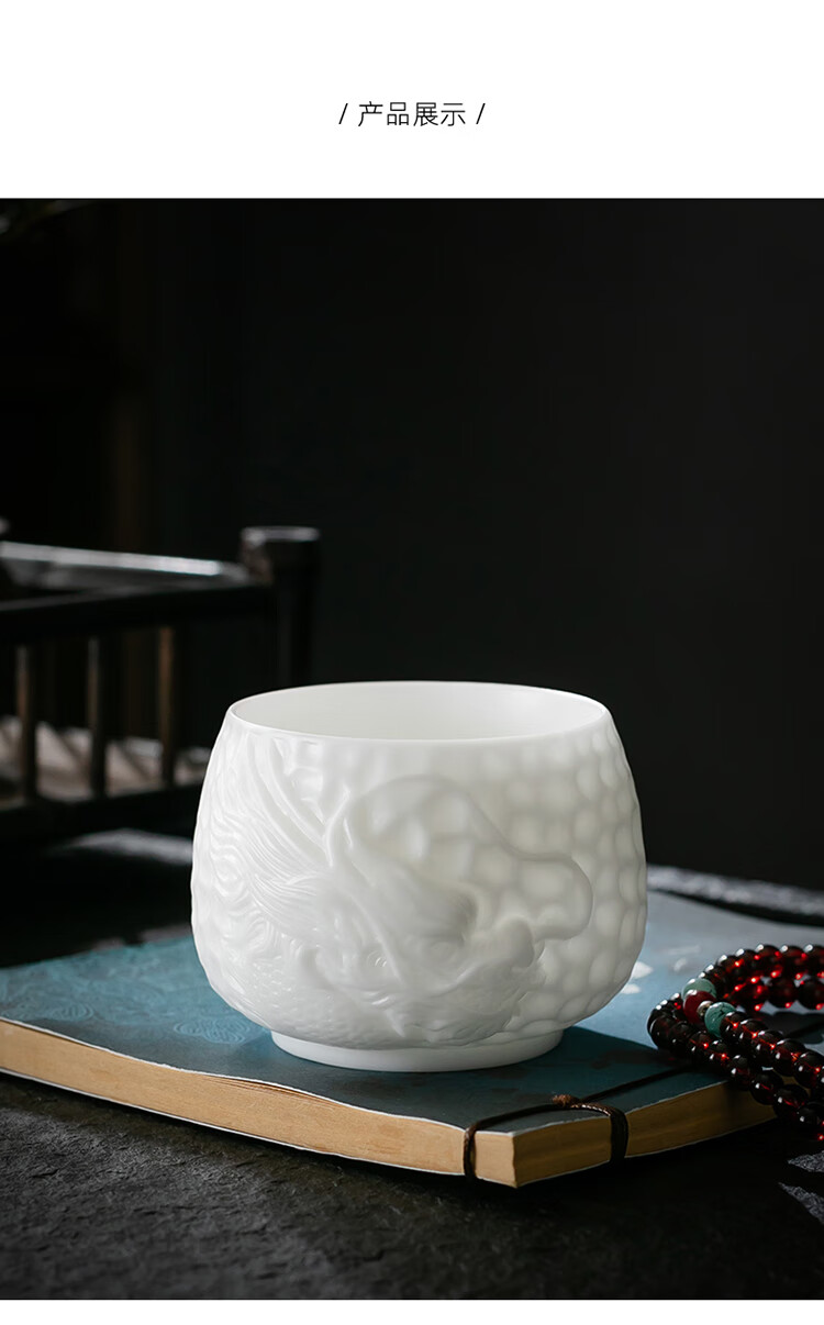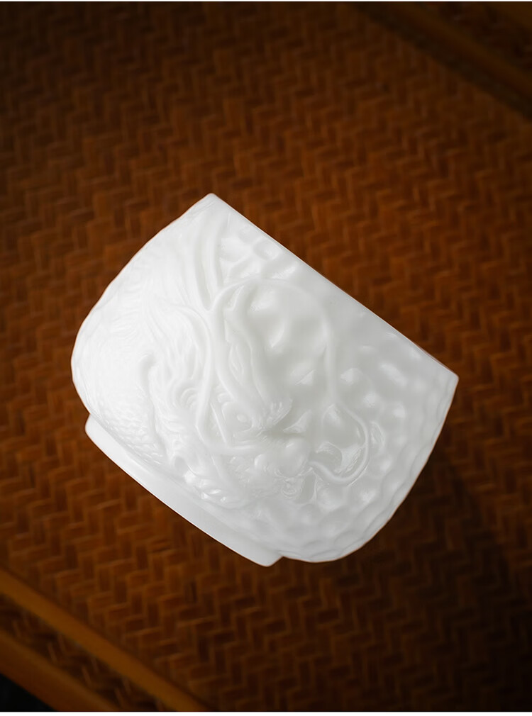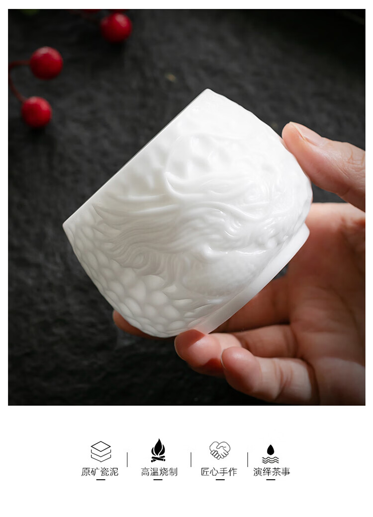 金镶玉 主人杯 羊脂玉白陶瓷 盛世祥龙 180ml 白色(单位:个)