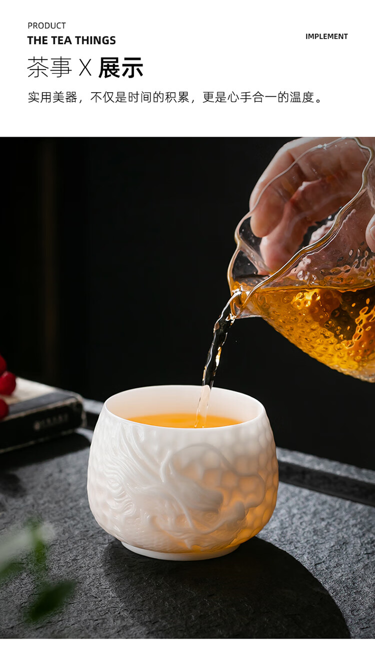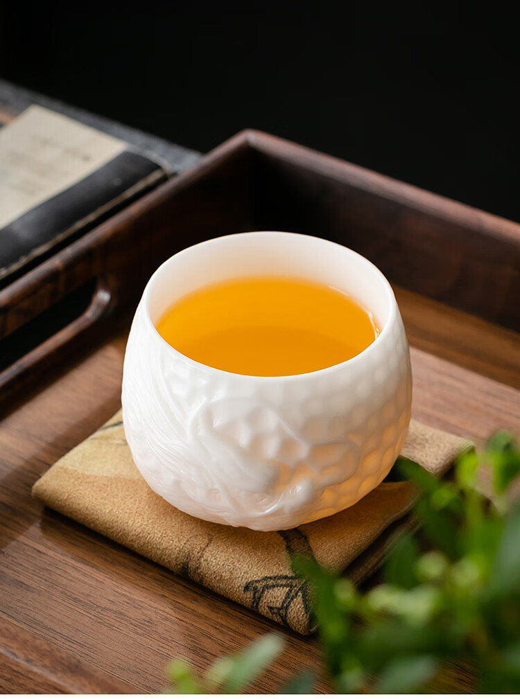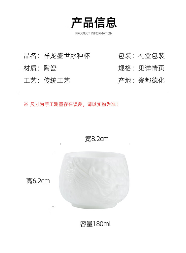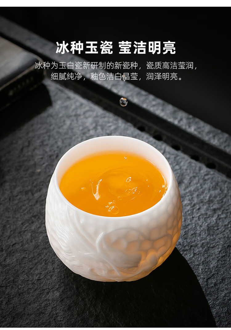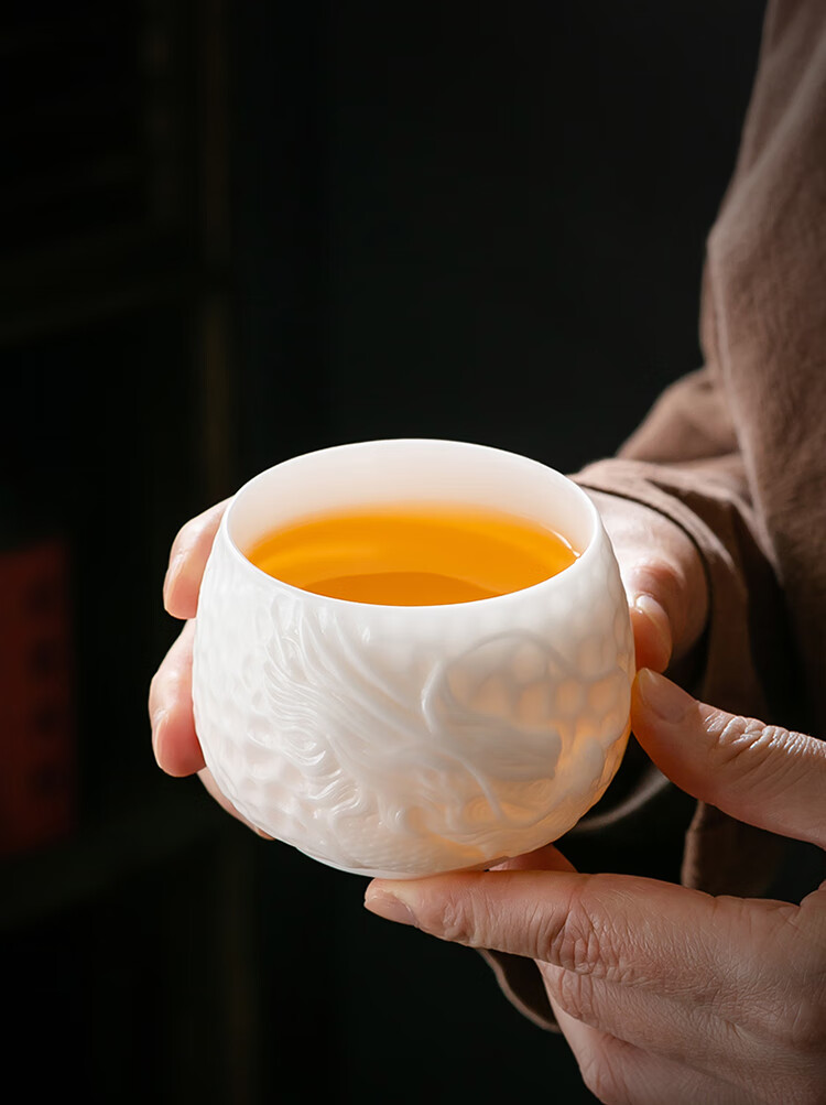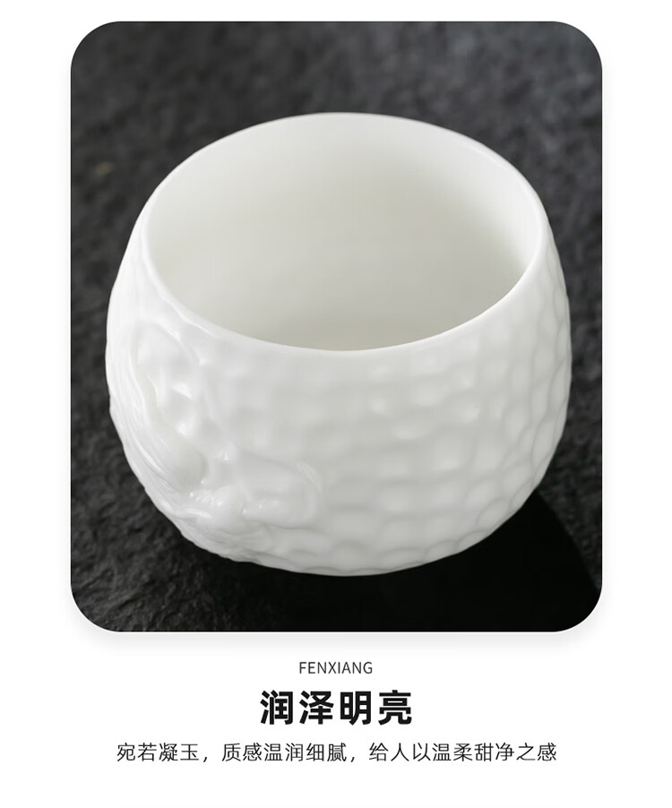 金镶玉 主人杯 羊脂玉白陶瓷 盛世祥龙 180ml 白色(单位:个)