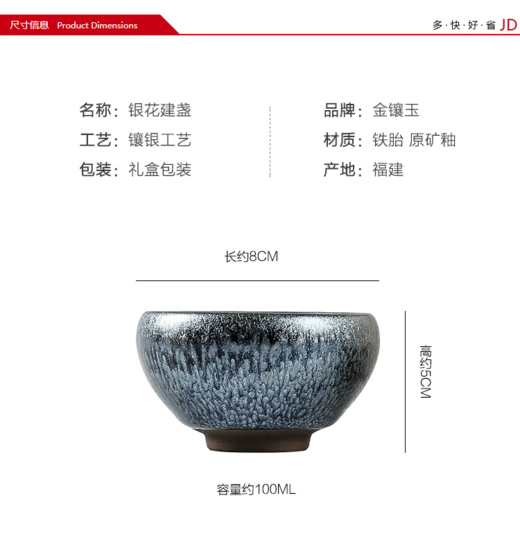 金镶玉 茶杯 银花盏 100ml 铁胎色(单位:个)