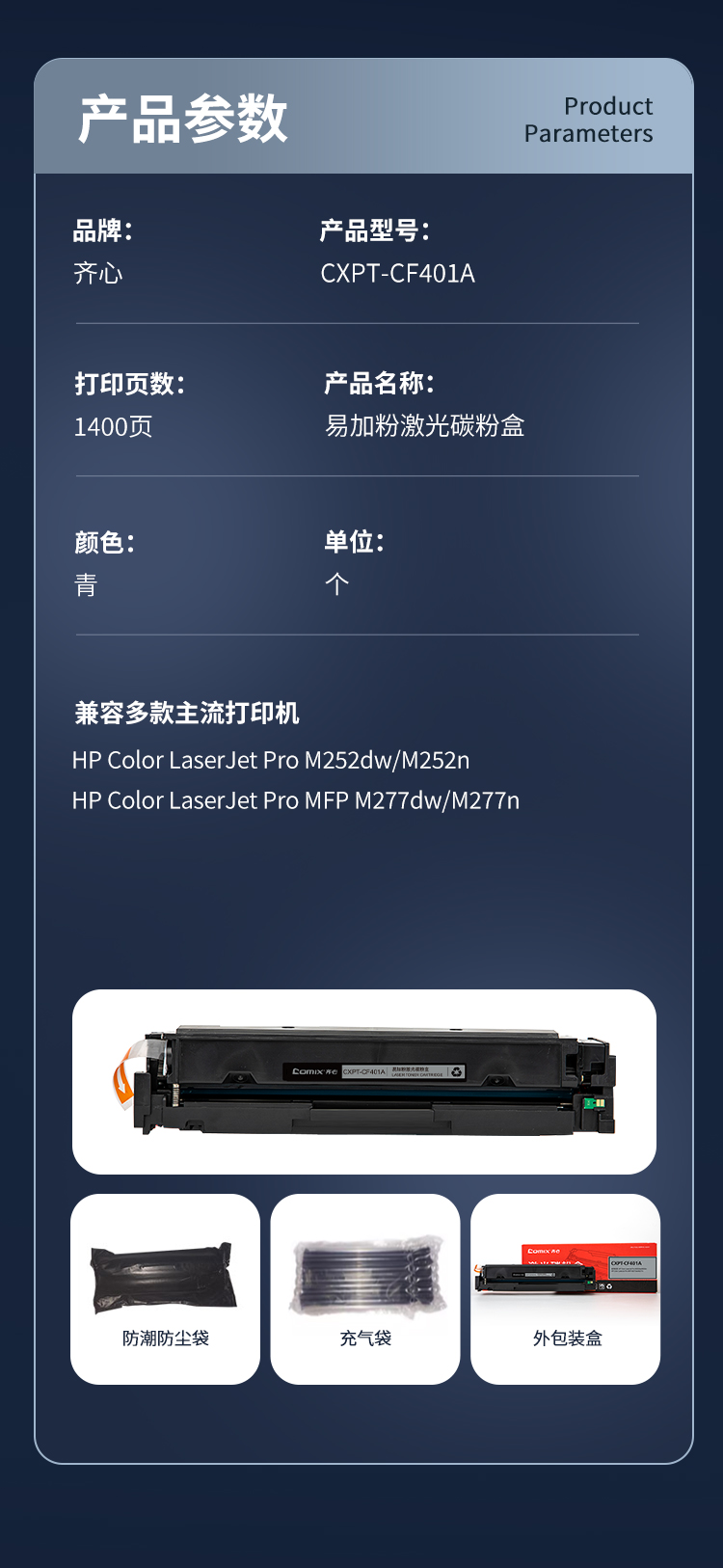 齐心(COMIX) 易加粉激光碳粉盒 CXPT-CF401A 1400页 青色(单位:个)