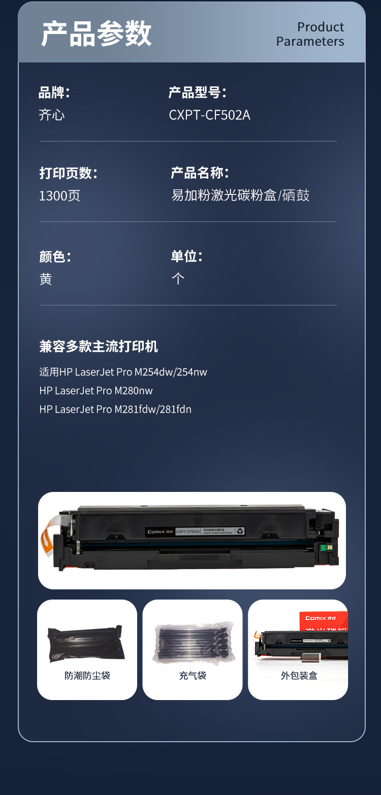 齐心(COMIX) 易加粉激光碳粉盒 CXPT-CF502A 1300页 黄色(单位:个)