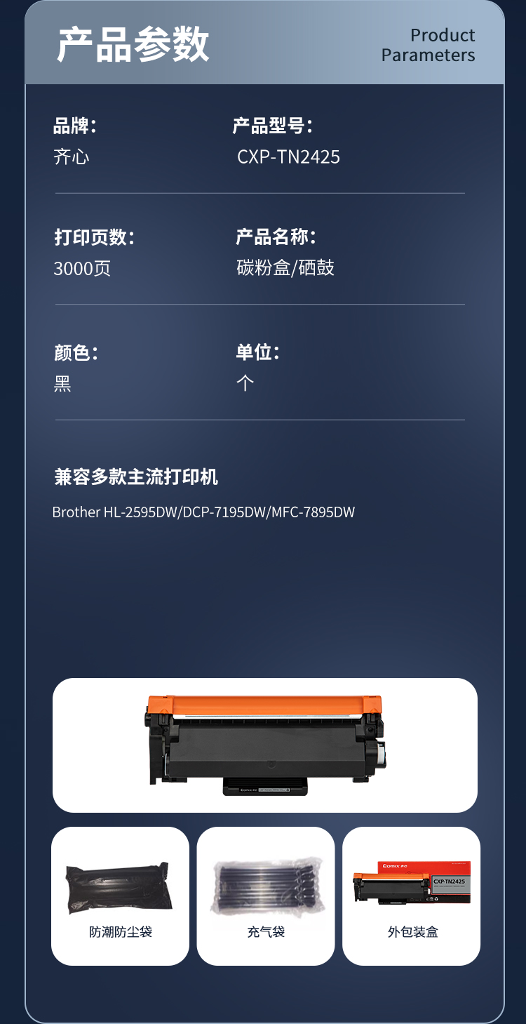 齐心(COMIX) 碳粉盒 CXP-TN2425 3000页 黑色(单位:个)