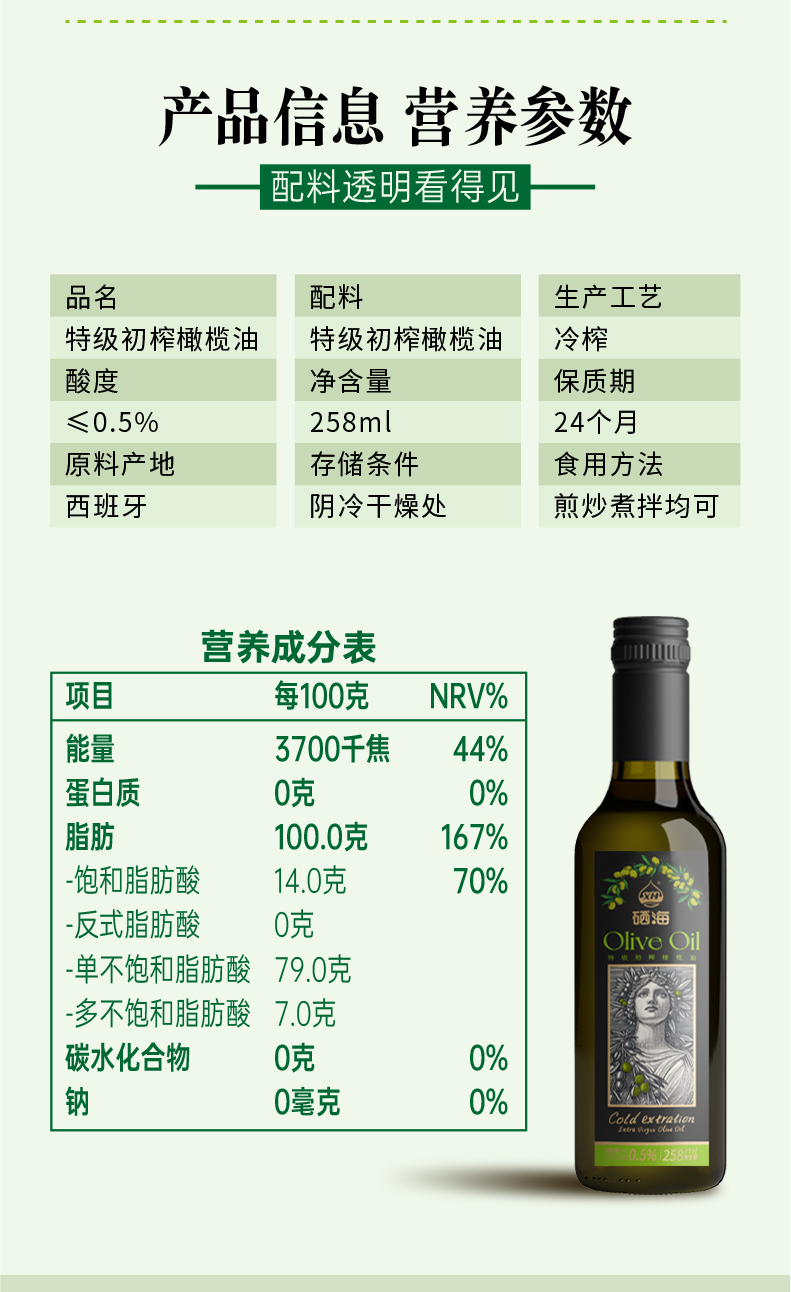 硒海(XH) 头道冷榨 特级初榨橄榄油 258ml 混色(单位:瓶)