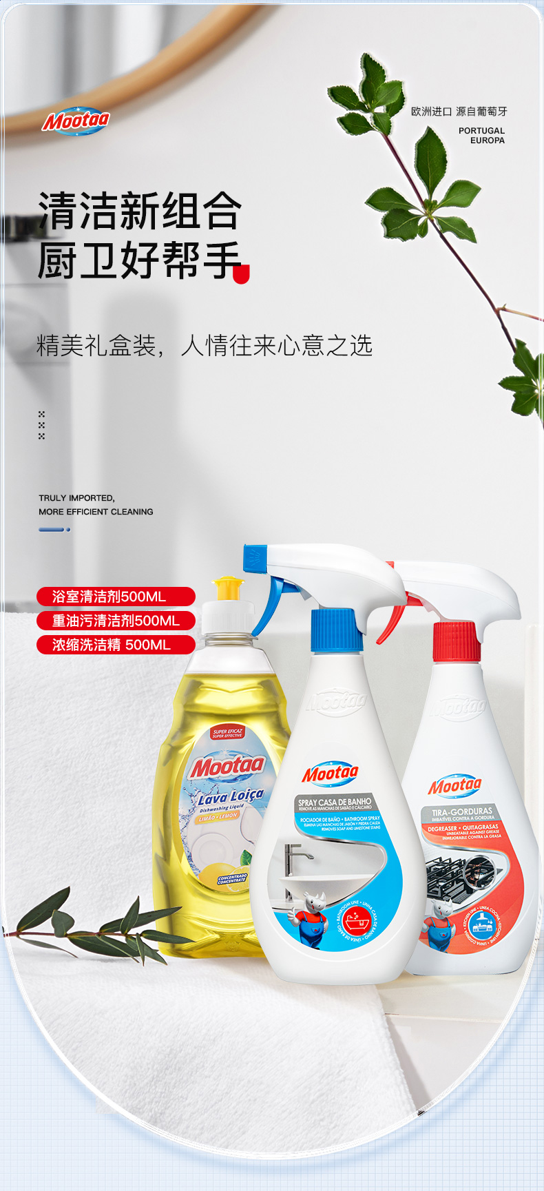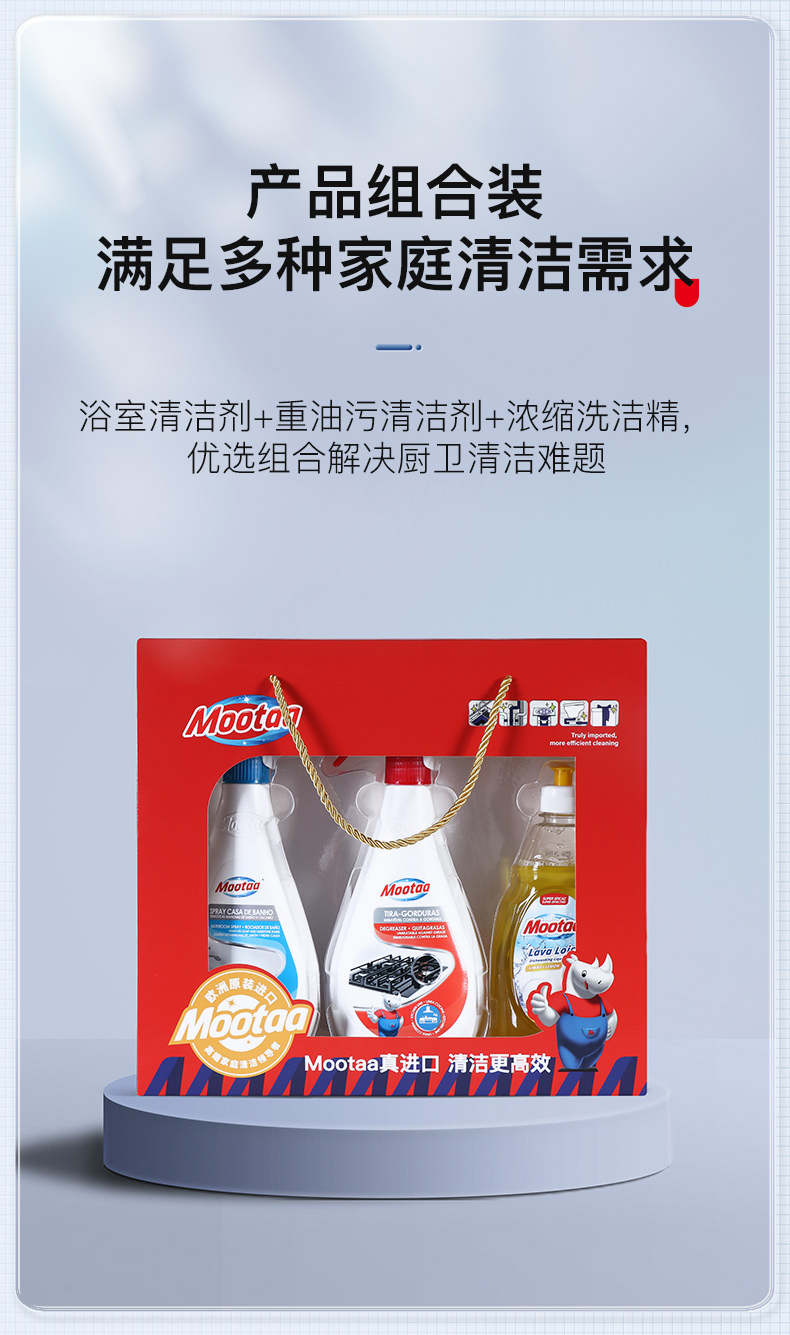 膜太/MOOTAA 清洁剂礼盒三件套 去油污 (浓缩洗洁精500ML+重油污500ML +浴室500ML) 混色(单位:组)