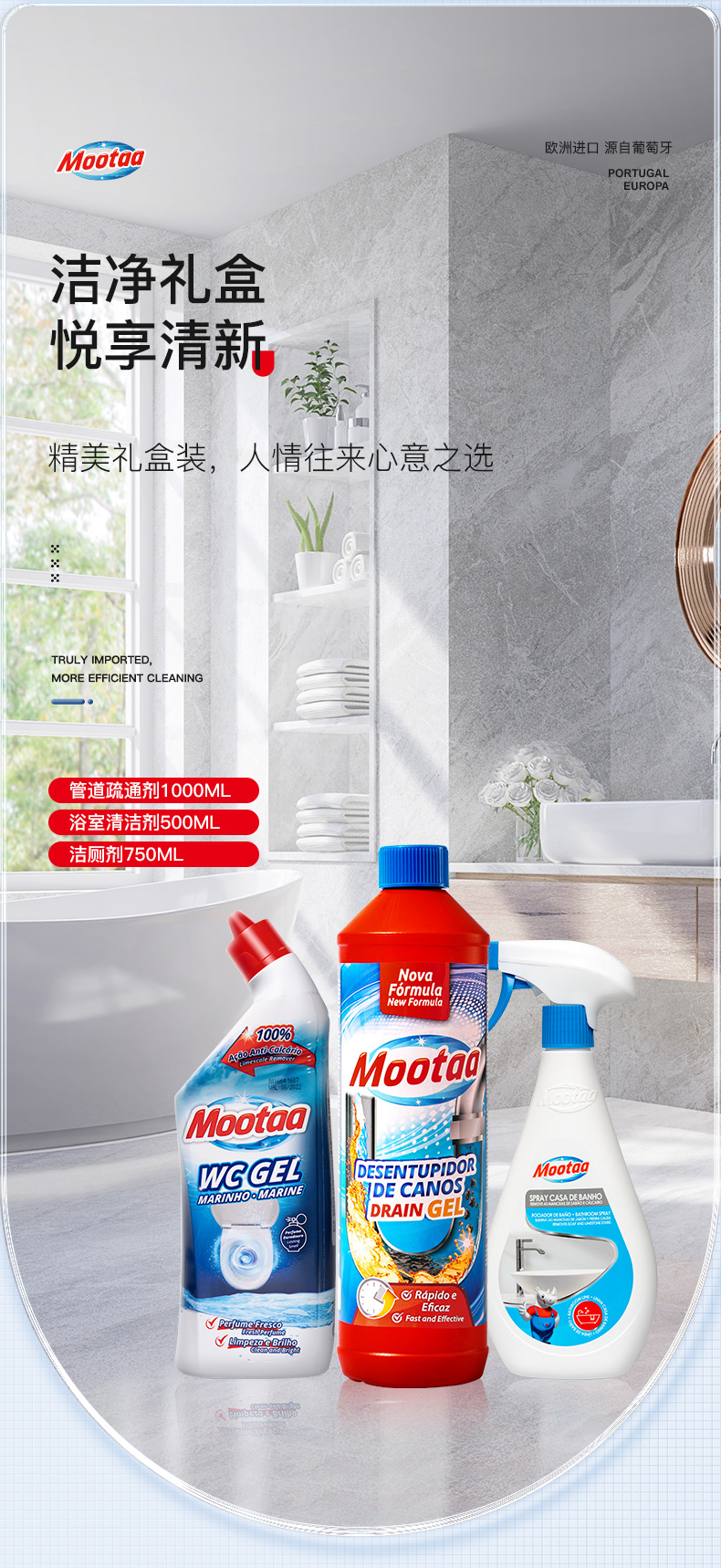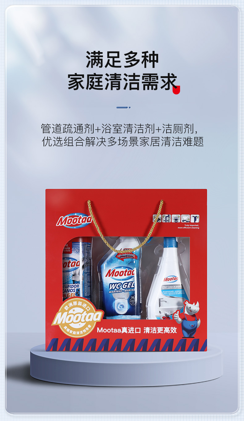 膜太/MOOTAA 清洁剂礼盒三件套 去污 ( 管道疏通1000ML+浴室500ML +洁厕750M) 混色(单位:组)