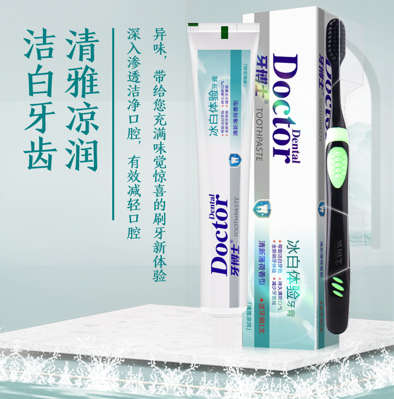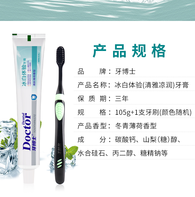 牙博士 冰白体验牙膏 清雅凉润 105g(含1支牙刷) 混色(单位:组)