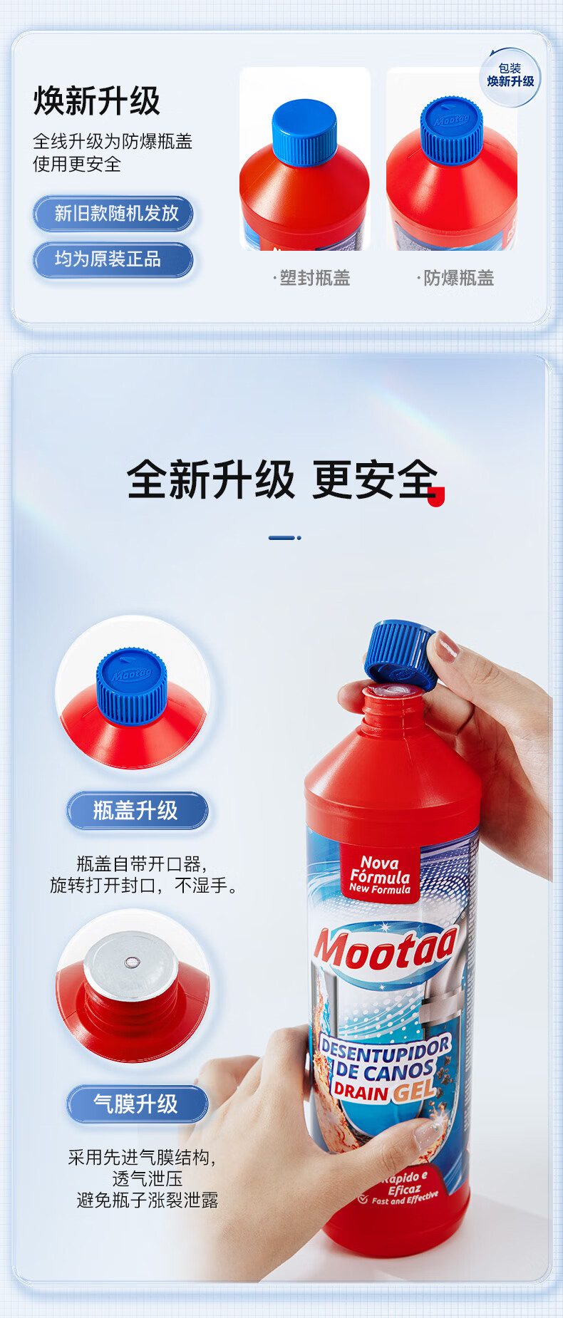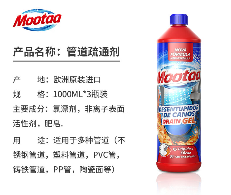 膜太/MOOTAA 管道疏通剂 下水道 1000ml*2瓶 红色(单位:组)