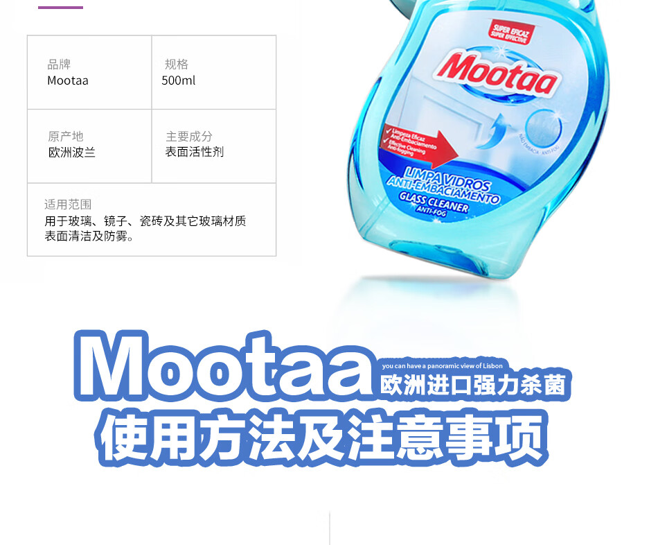 膜太/MOOTAA 玻璃清洁剂 去水渍 500ml*2瓶 蓝色(单位:组)