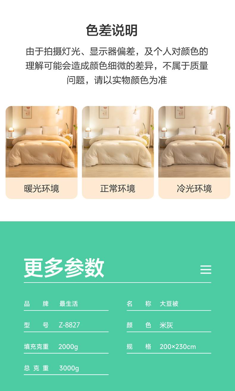 最生活 云感柔肤抗菌大豆被(冬被) Z-8827 200*230cm/3kg 米灰(单位:张)