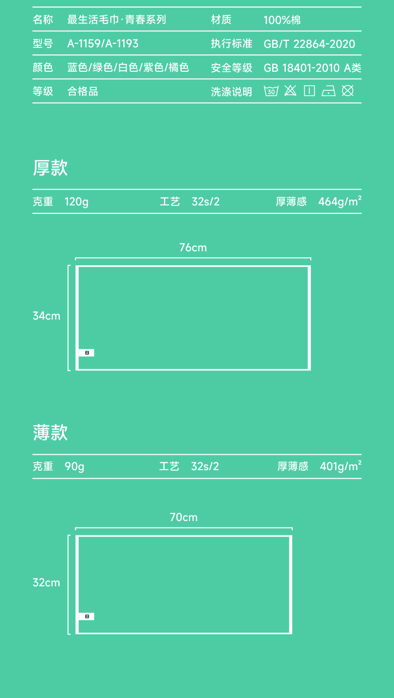 最生活 毛巾. 加厚款青春系列 A-1159 34*76cm/120g 蓝色(单位:条)