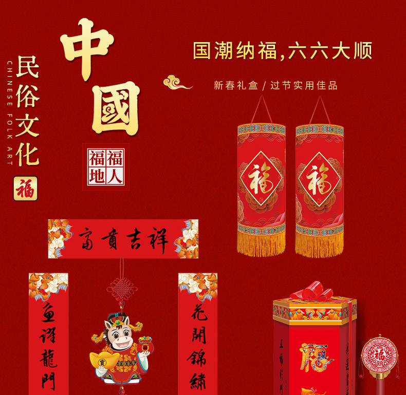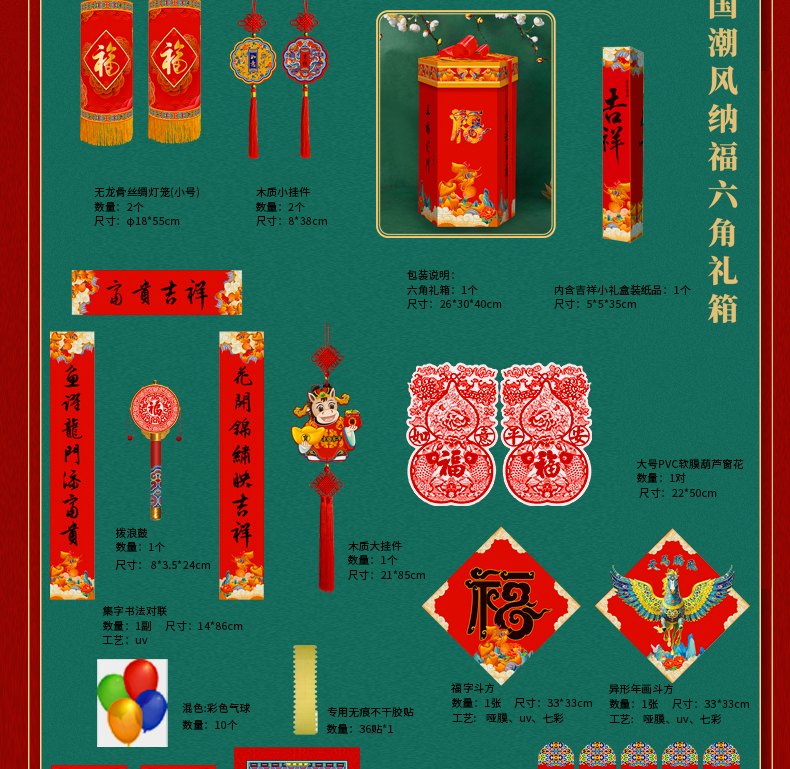 福人福地(FURENFUDI) 企业福利马年国潮风纳福六角礼箱套装 CC.25.04.01 38件 红色(单位:套)