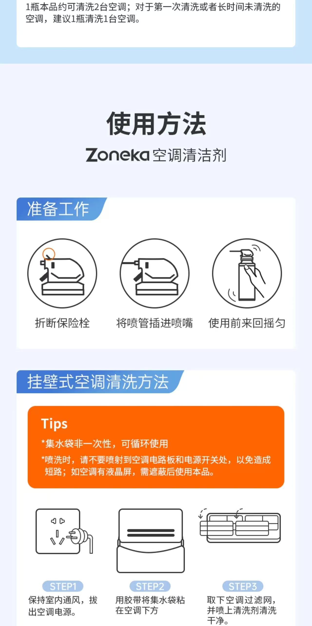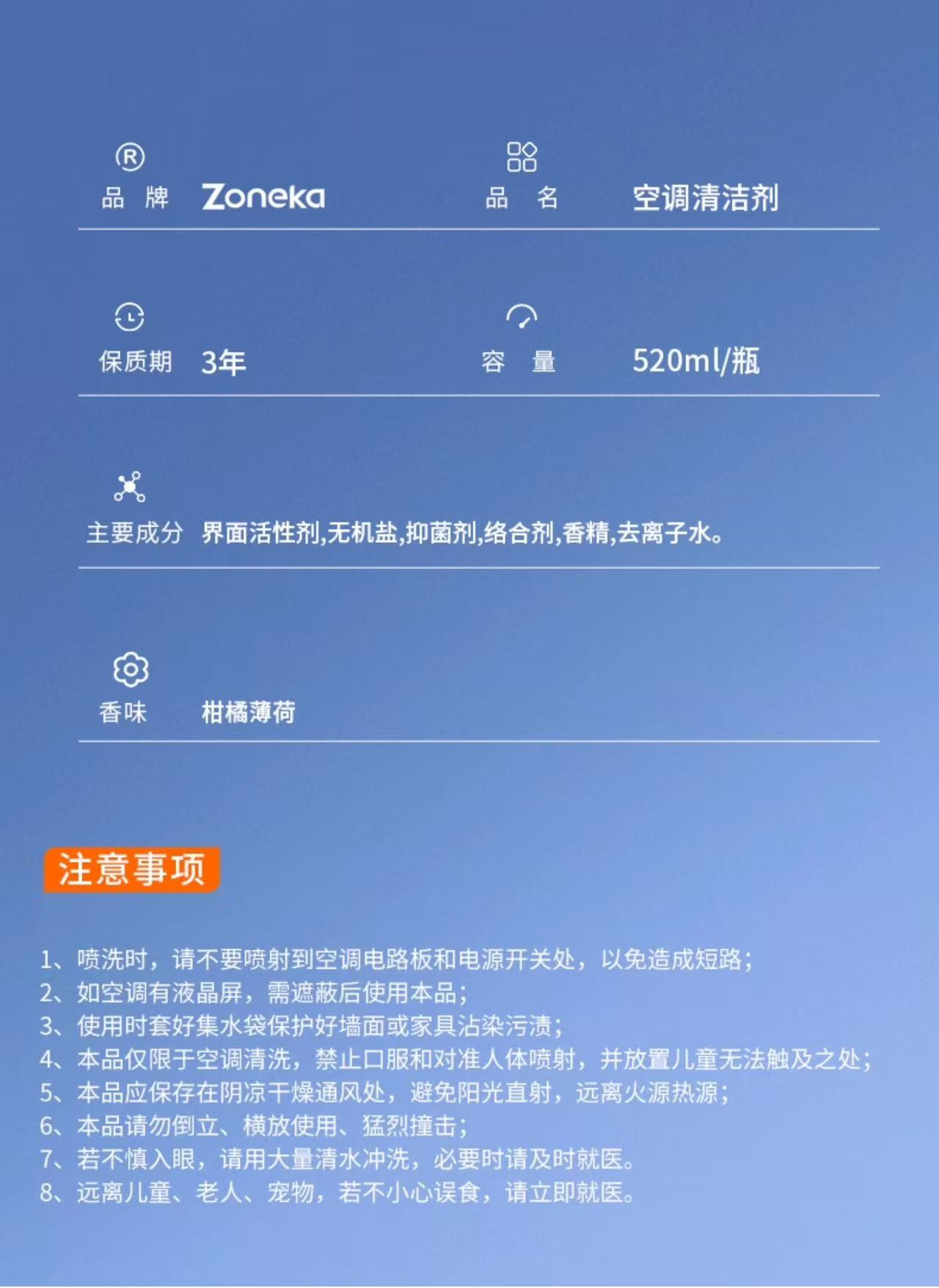 Zoneka 空调清洁剂 除异味 520ml 蓝色(单位:瓶)