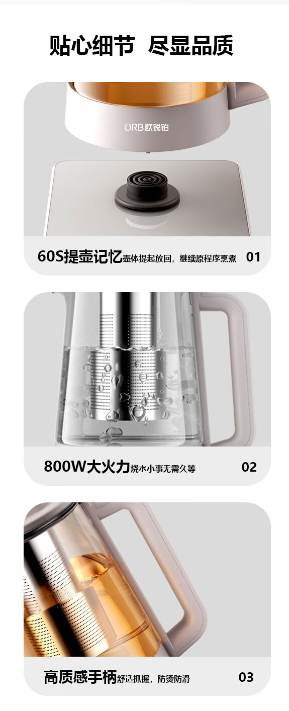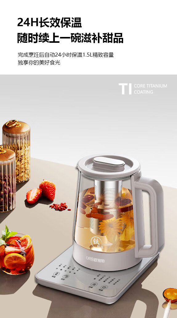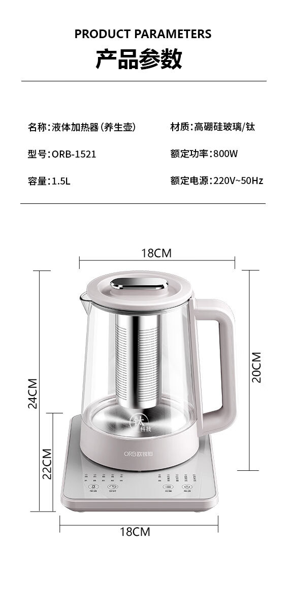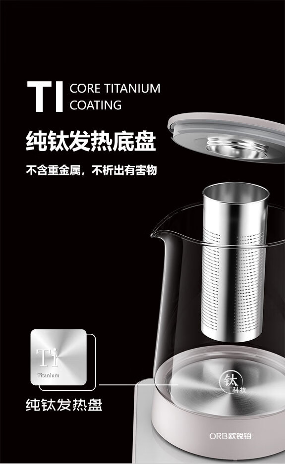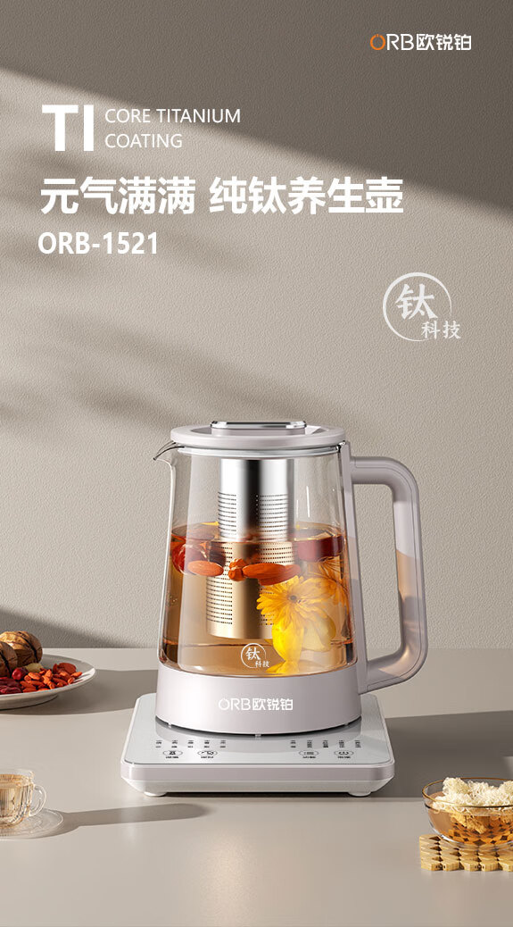 欧锐铂(O.R.B) 元气满满-纯钛养生壶 ORB-1521 1.5L 银色(单位:个)