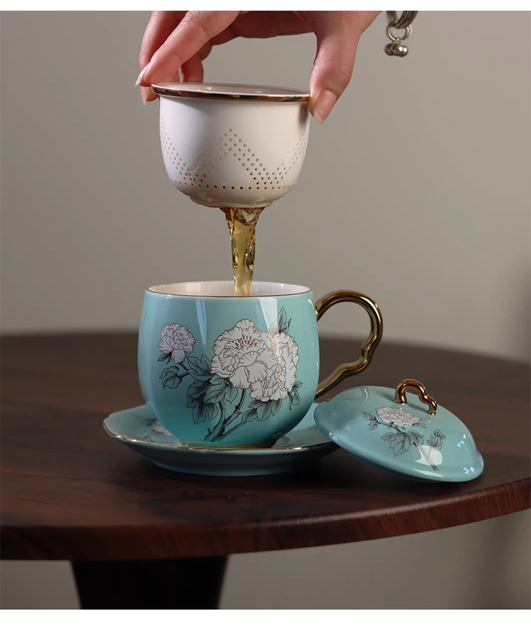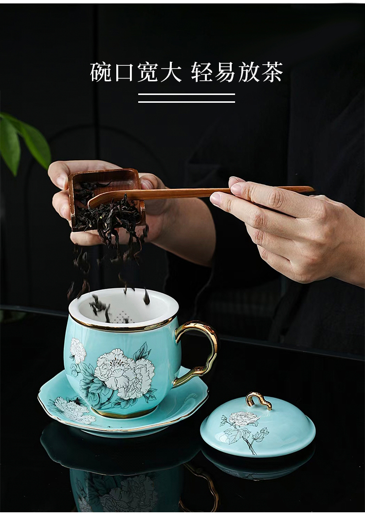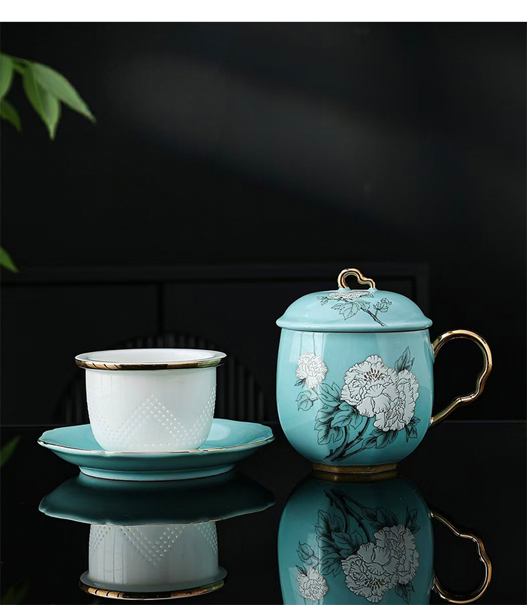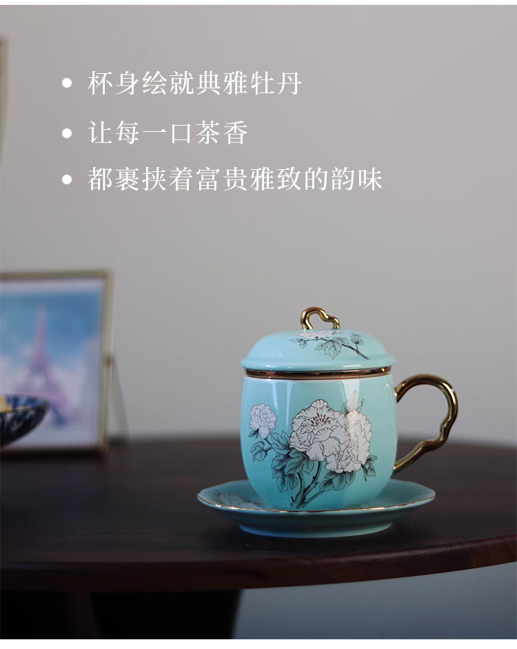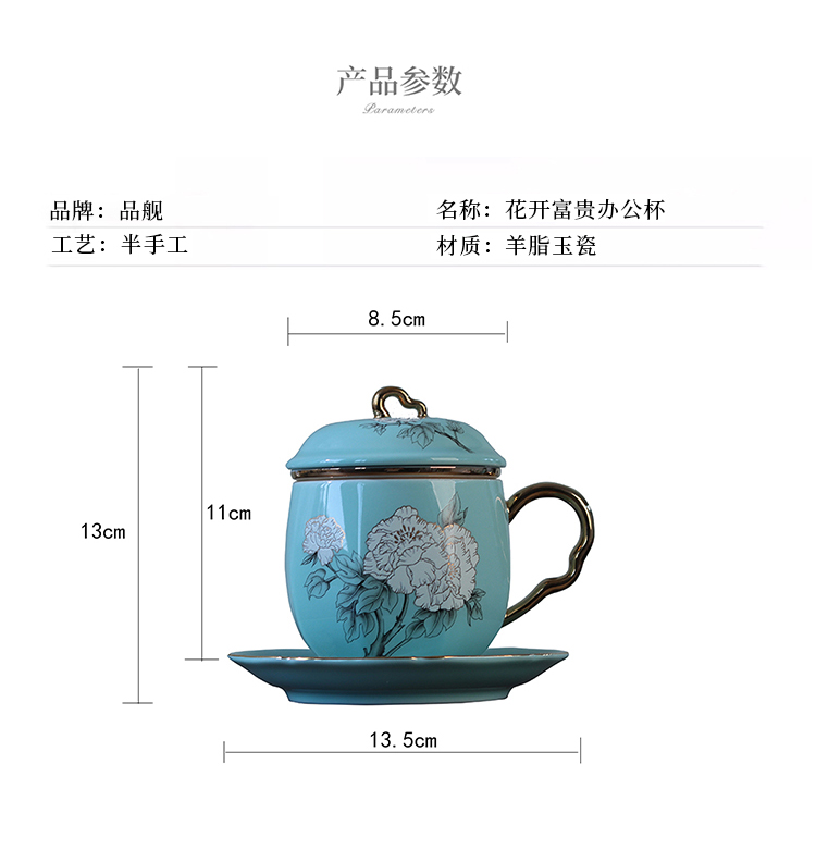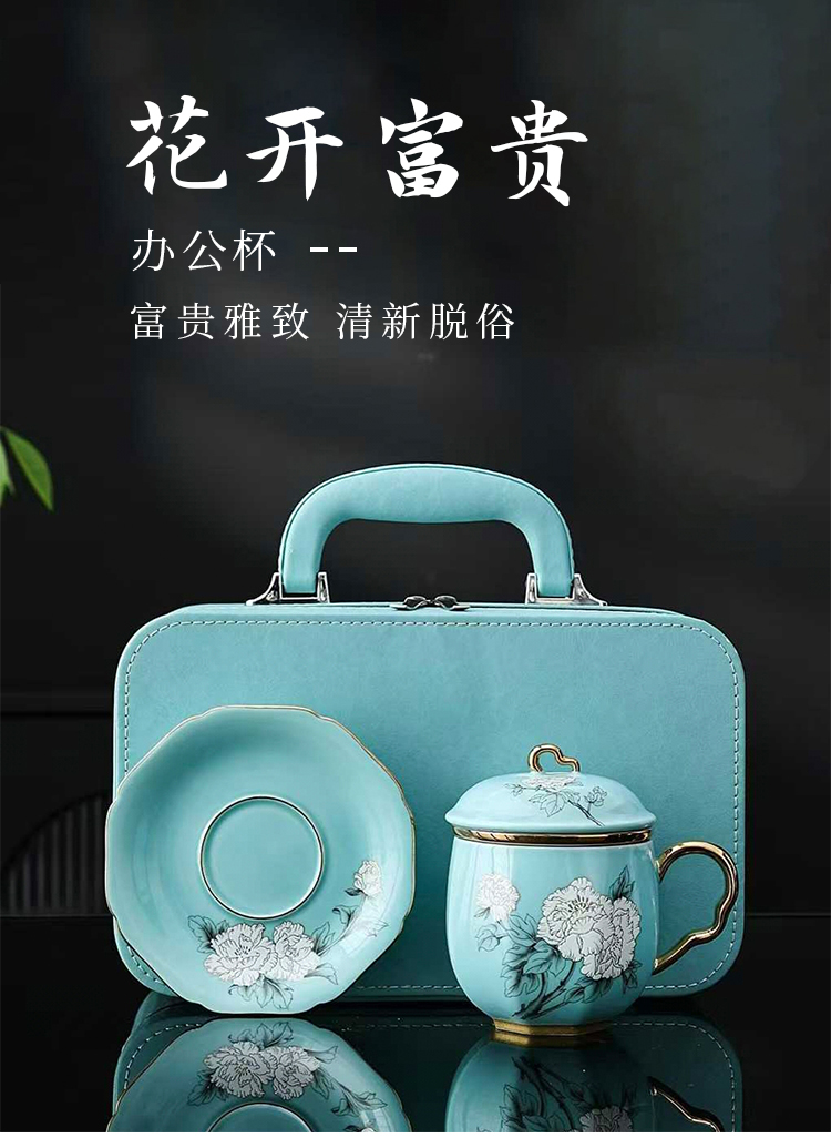 品舰 花开富贵办公杯 PJL066 办公杯*1、茶滤*1、杯碟*1、皮包*1 天蓝色(单位:套)