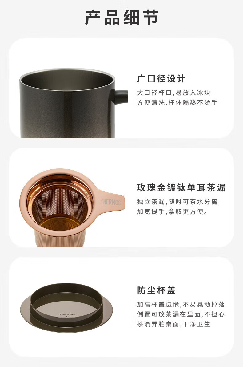 膳魔师(THERMOS) 不锈钢把手杯 TEMC-400-WH 400ml 白色(单位:个)