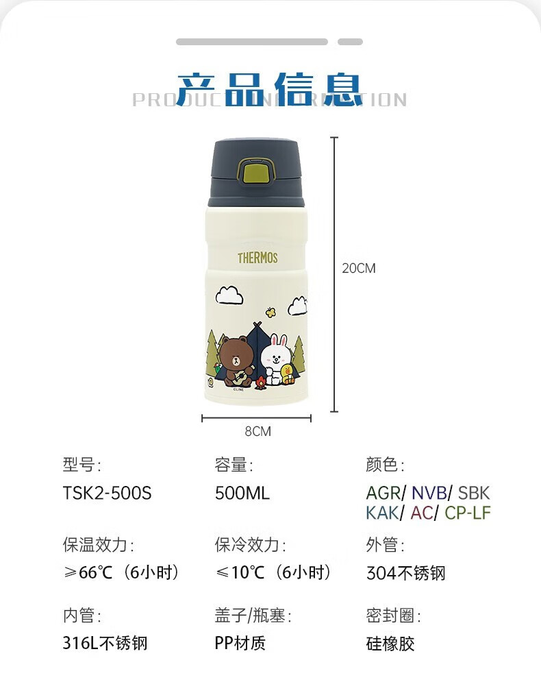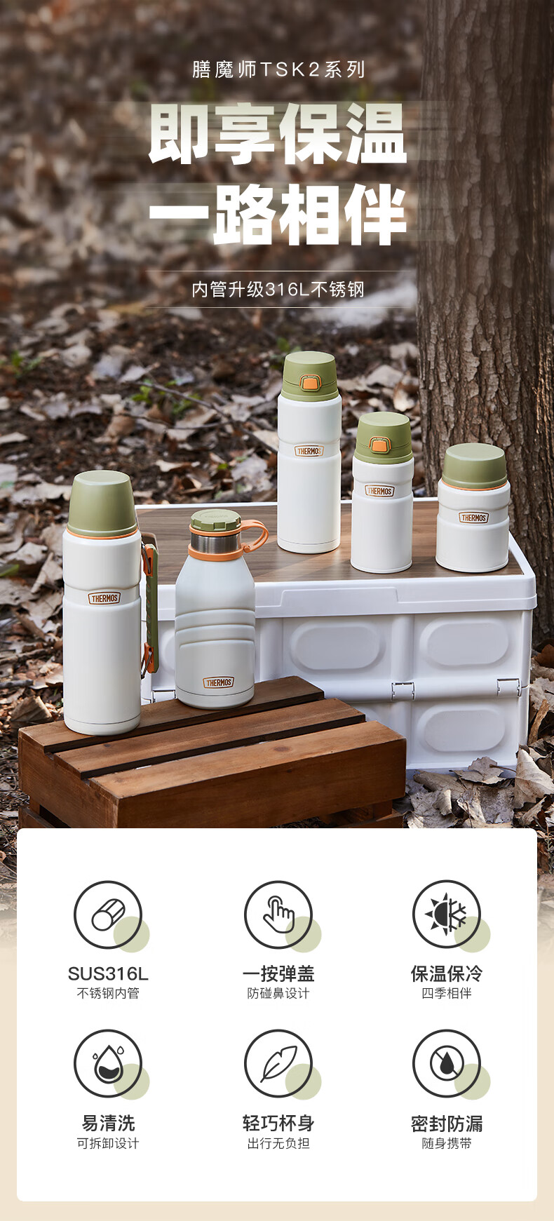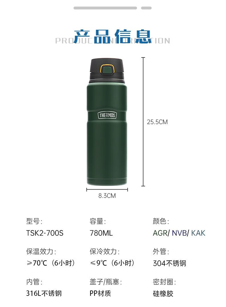 膳魔师(THERMOS) 高真空不锈钢保温杯 TSK2-700SCRW 780ml 浅绿色(单位:个)