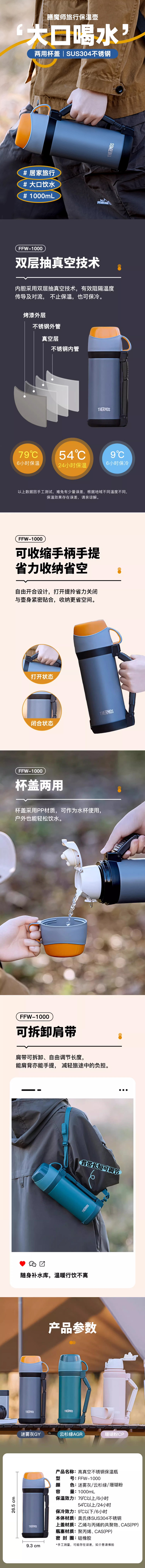 膳魔师(THERMOS) 高真空不锈钢保温瓶 FFW-1000 AGR 1L 绿色(单位:个)
