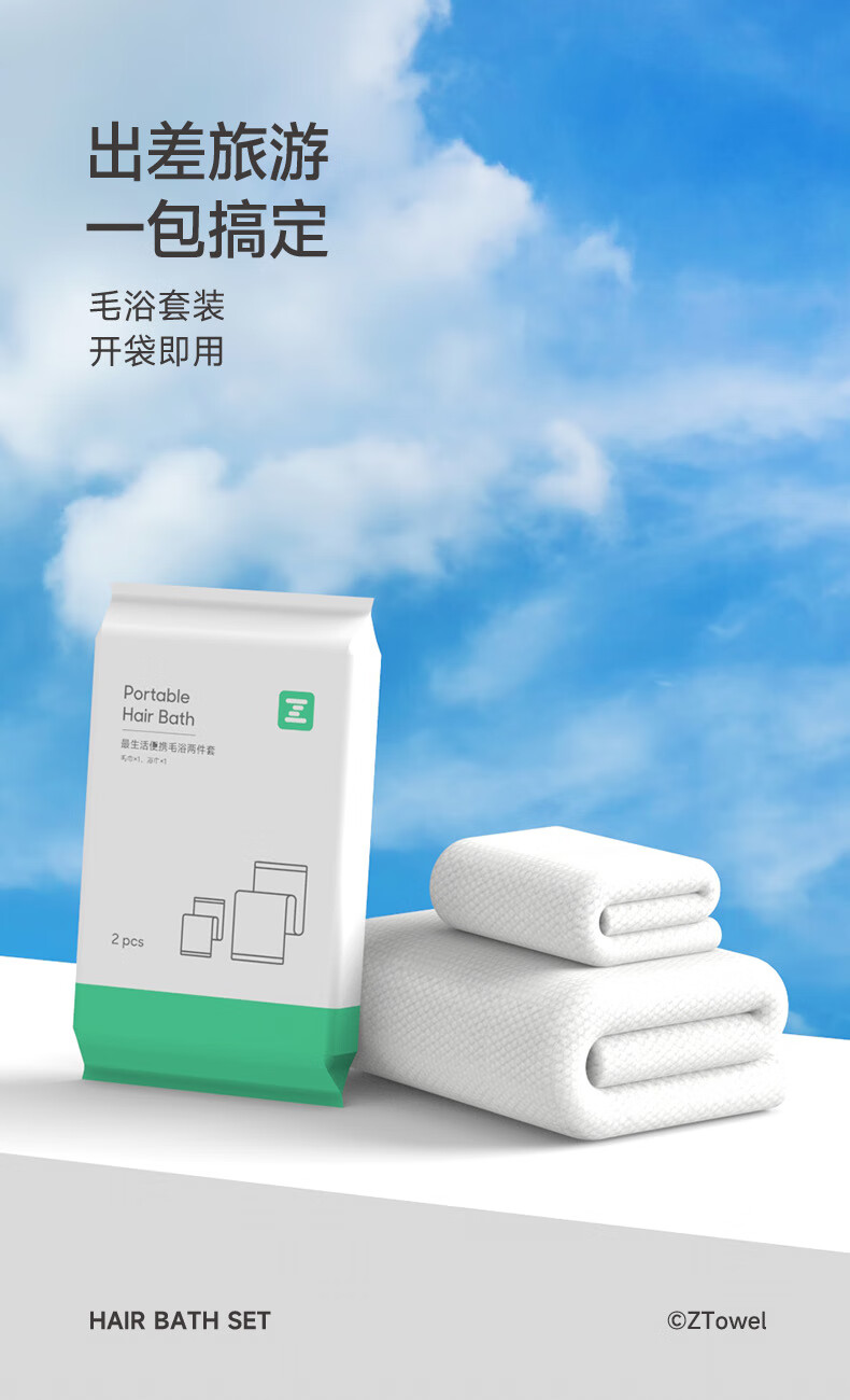 最生活 便携毛浴套装 A-2200 毛巾:30*60cm;浴巾:70*110cm/*5包装 白色(单位:套)